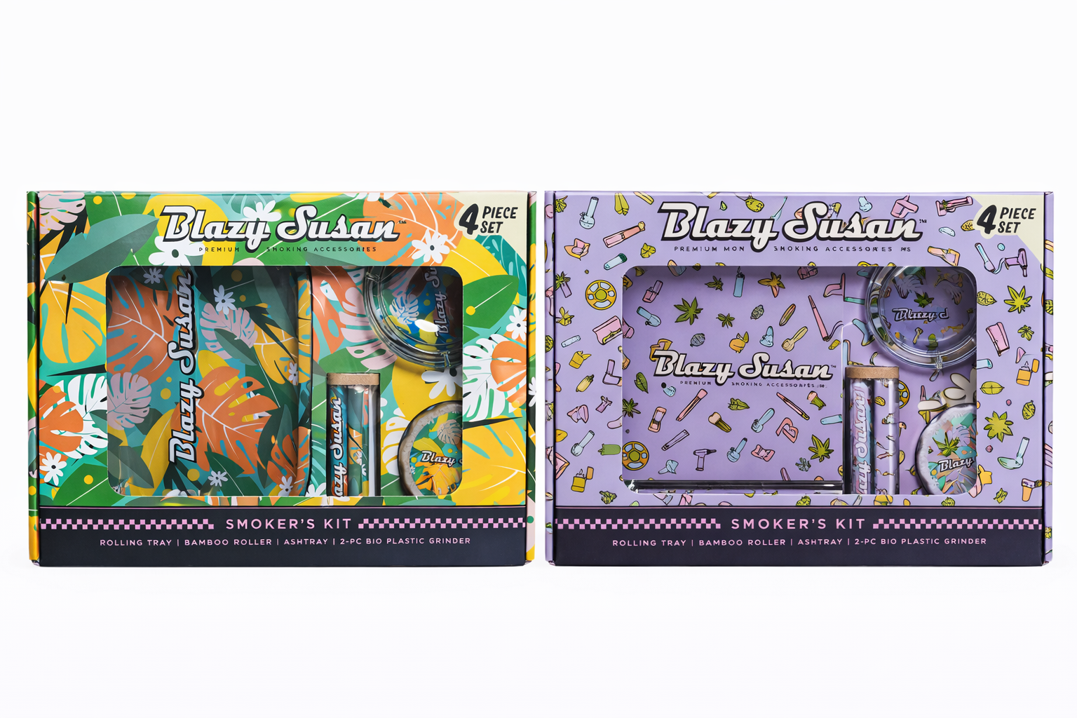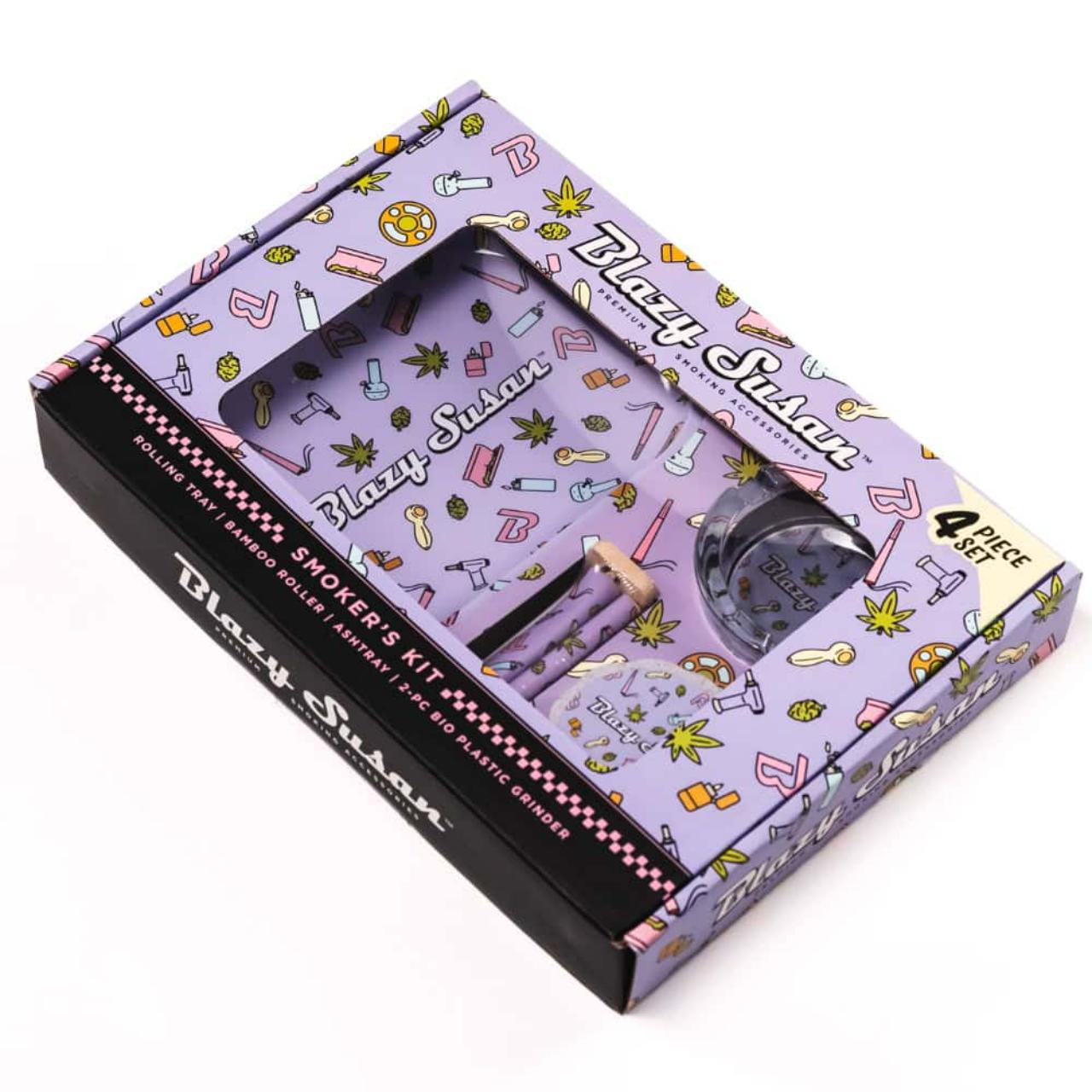 The Blazy Susan 4pc Smoker's Kit is a comprehensive, all-in-one set designed for both convenience and style. Known for their signature aesthetic, these kits bundle essential high-quality rolling accessories into a single, cohesive package.