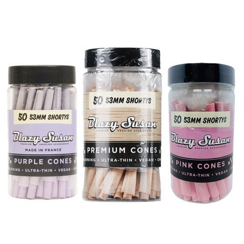 The Blazy Susan Cones Jar-50CT | 53MM is a premium set of the best pre-rolled cones designed for convenience and performance. Crafted from ultra-thin, high-quality French rolling paper, these 53 mm “Shorty” cones are perfect for quick, compact sessions and easy packing thanks to their precision-formed tips and consistent shape.