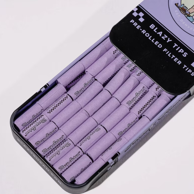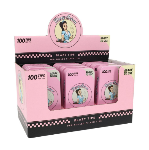 The Blazy Susan - Tips in Tin (12 Tins Per Box) is a premium accessory offering designed for smokers who take pride in the "craft" of rolling. This display box contains 12 individual collectible tins, each packed with 100 high-quality perforated filter tips.