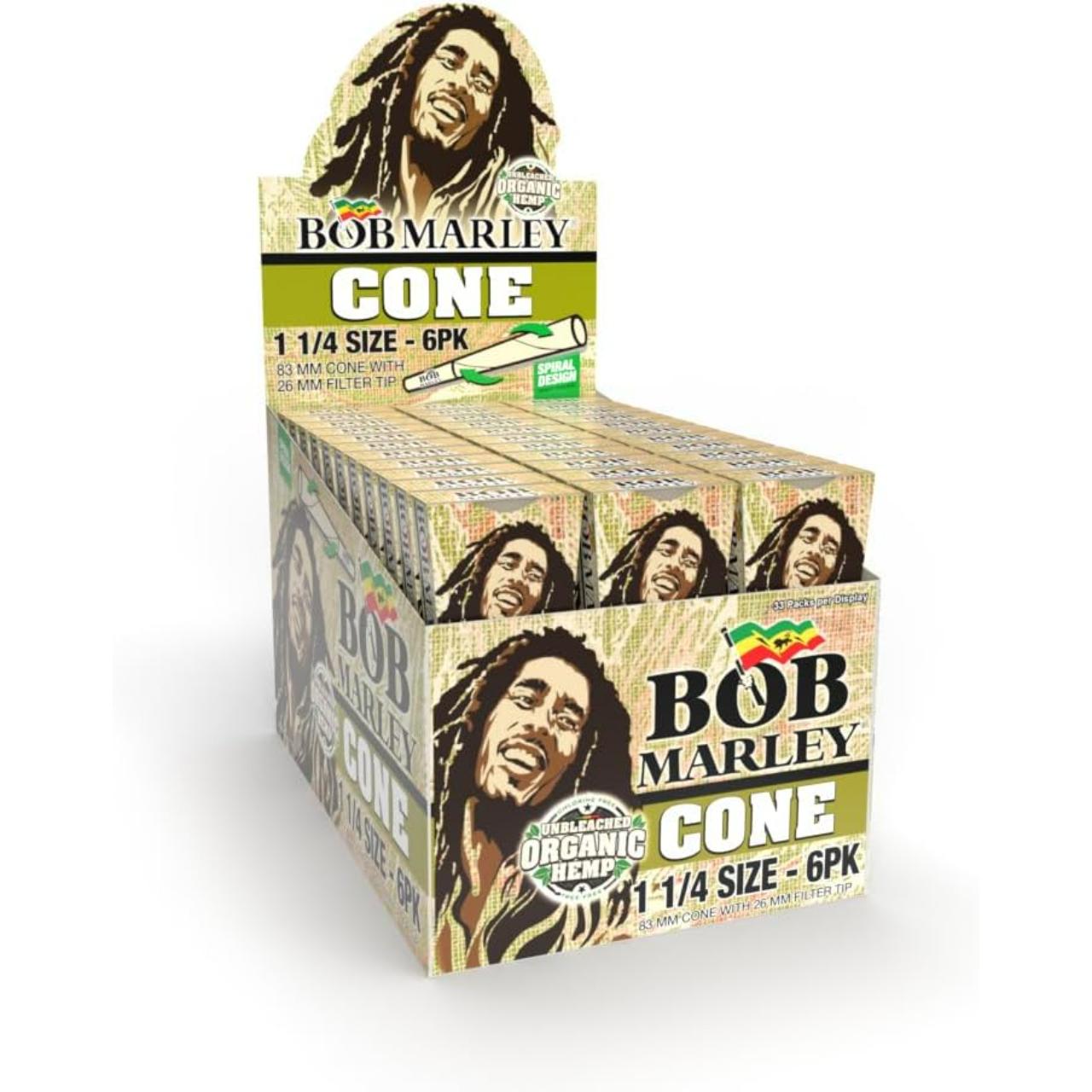The Bob Marley - 1-1/4 Unbleached Organic Hemp Cones (33ct Display) is a high-volume, eco-conscious offering that pays tribute to the legendary reggae icon. This display box is designed for sustainability and convenience, providing a massive total of 198 cones per box.