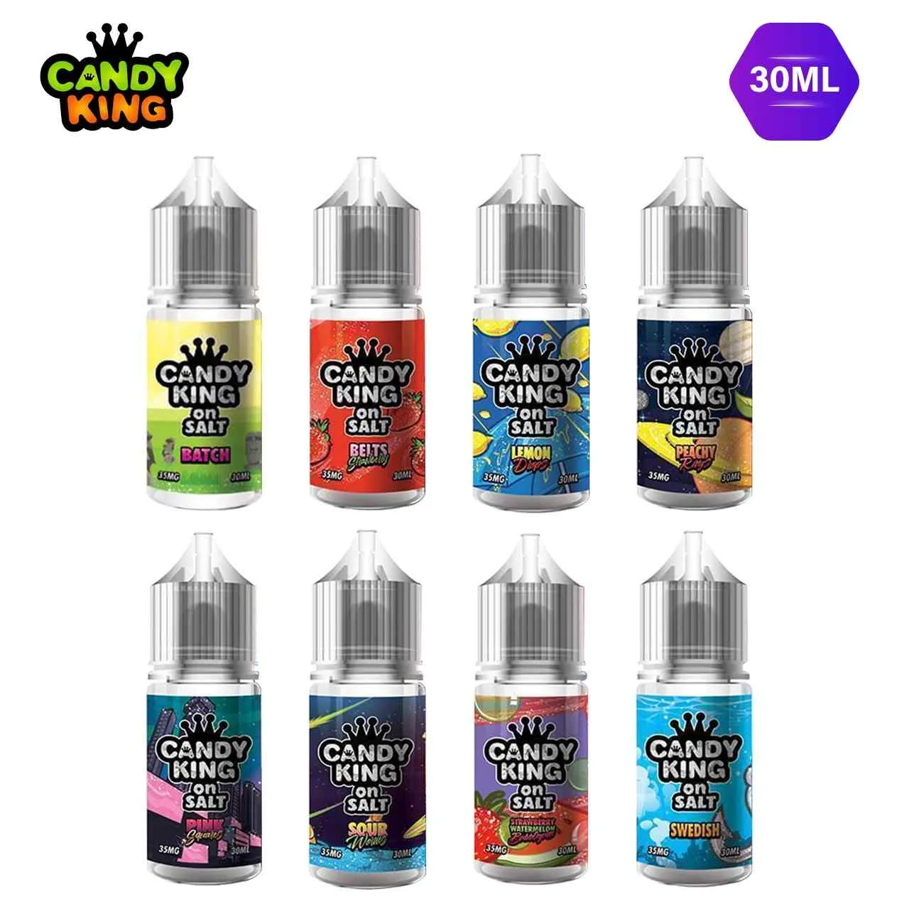 Experience the ultimate delicious taste with Candy King on Salt 30ml E-Juice - 35MG, a premium lineup designed specifically for low-wattage pod systems and MTL devices. This 30ml bottle features high-quality salt nic e-juice at a 35mg level, providing a punchy and consistent experience that mirrors the bold, vibrant profiles of your favorite childhood confections.