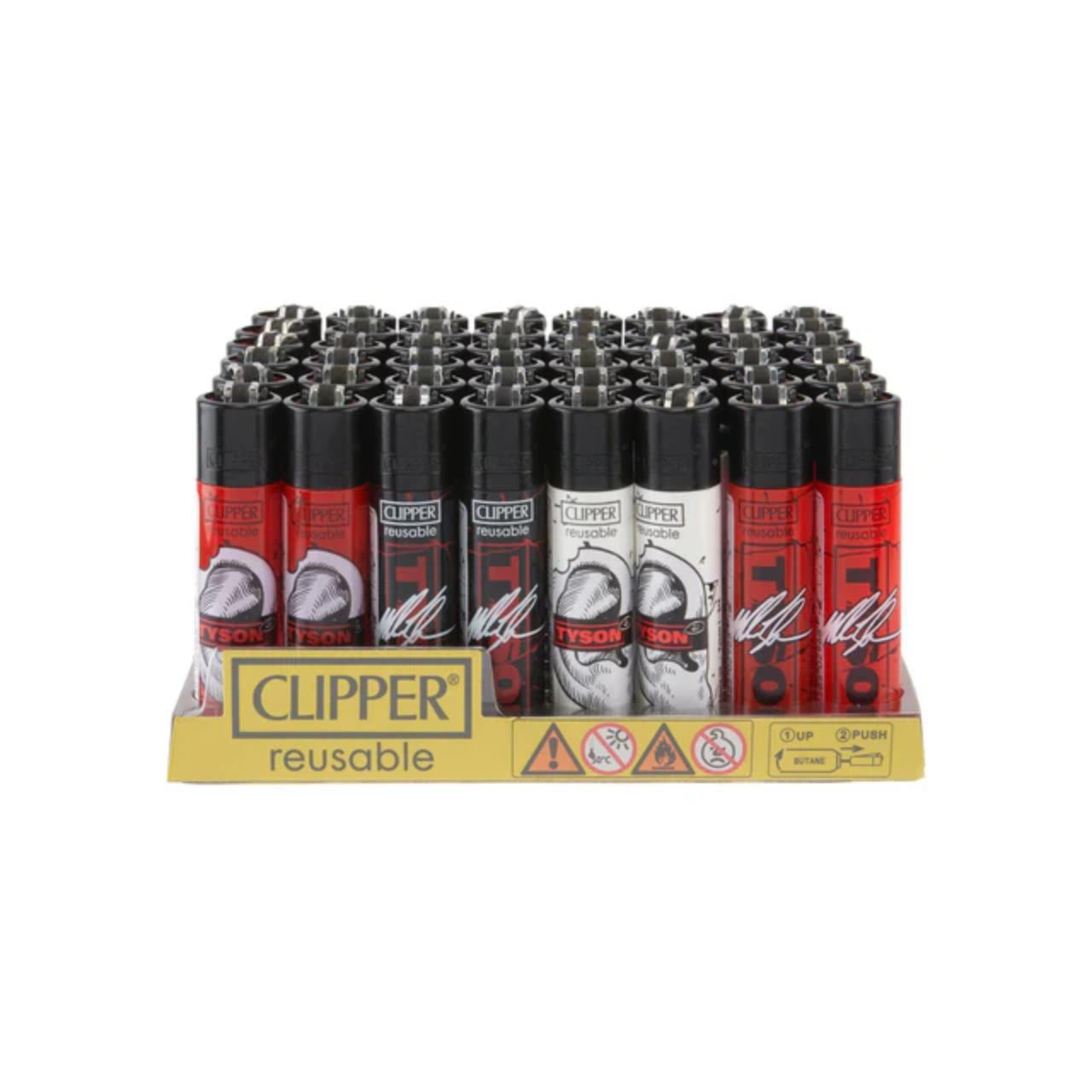 The Clipper - Tyson 2.0 - Lighters - 48ct Display collection combines the legendary branding of Mike Tyson with the world-renowned functionality of the Clipper Classic design. This 48-count retail display features a variety of exclusive "Tyson 2.0" artistic wraps, including iconic imagery like the "boxing gloves" and signature logos. Unlike standard disposable lighters, these high-power lighters are fully refillable and re-flintable, offering a sustainable, long-term ignition solution.