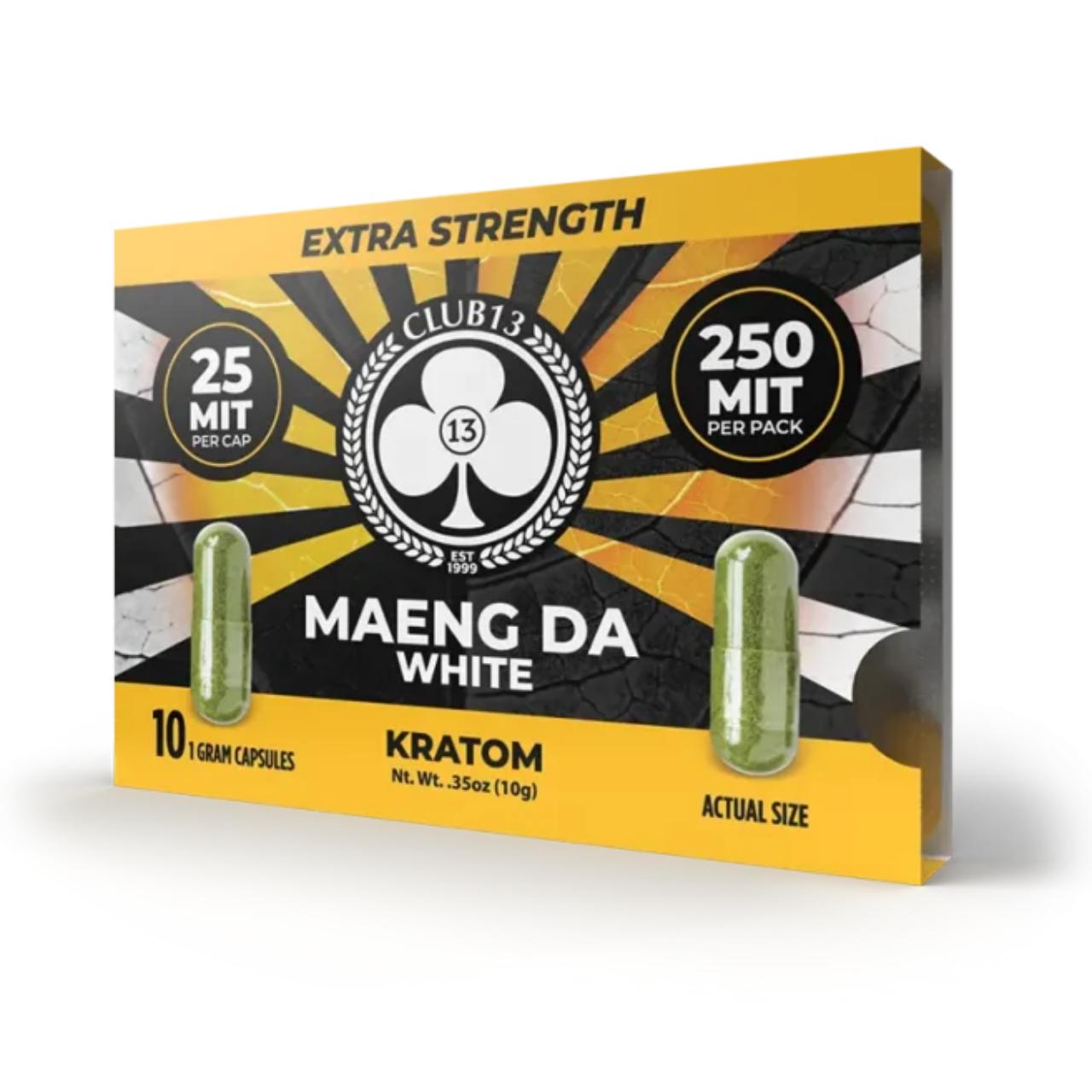 The Club13 Maeng Da White 250MIT Kratom Capsules (10ct per Pack) is an elite, extract-enhanced formula designed for those who require maximum energy and cognitive drive. Standardized to 250mg of mitragynine per pack, these capsules deliver a potent, high-performance experience far beyond standard leaf powder. This 6-pack retail display is the perfect shelf-filler for shops looking to provide customers with a powerful, "super-charged" morning or daytime kratom option.