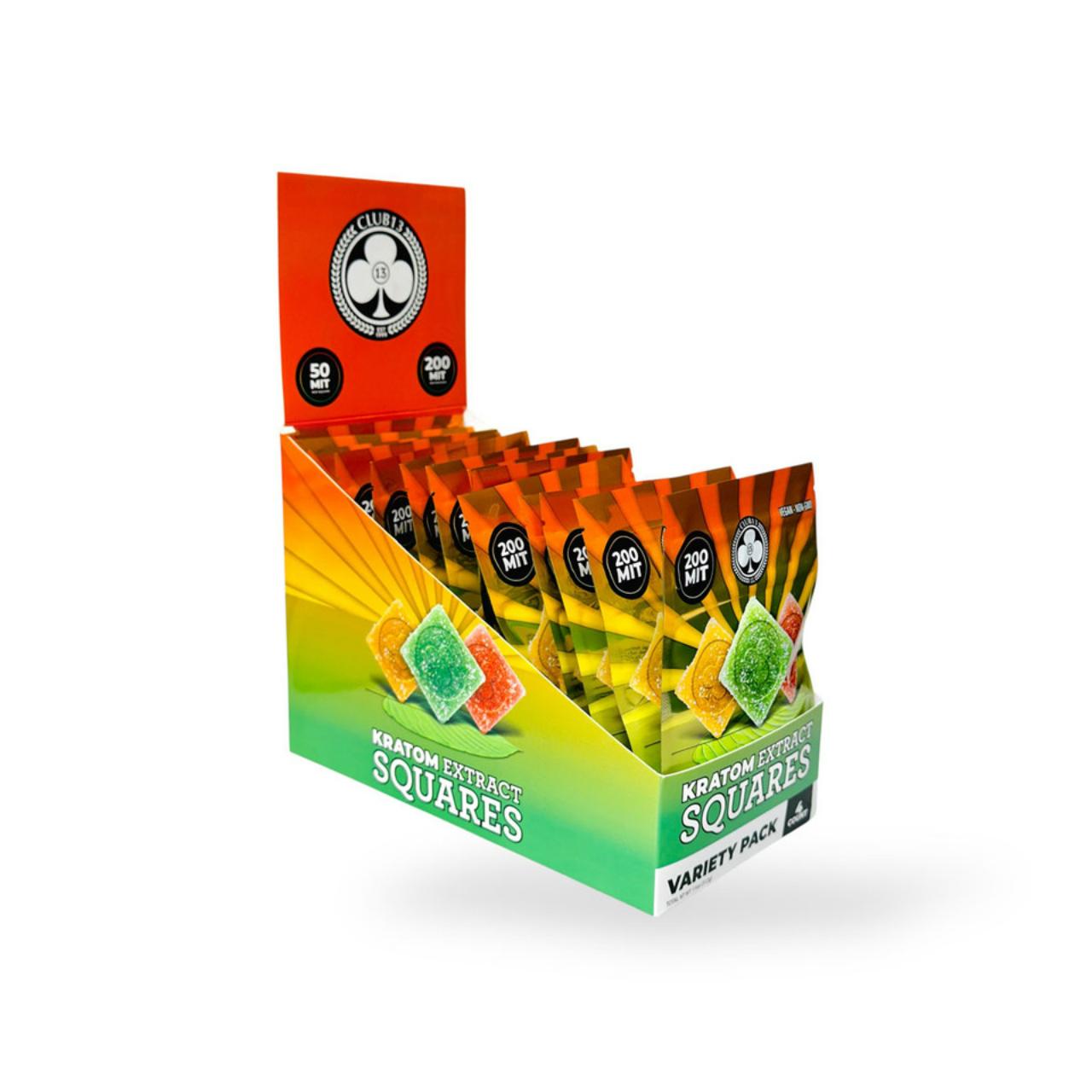The Club13 200MIT Kratom Gummies (15ct Display) offers a moderately potent, flavorful, and incredibly convenient way to enjoy the benefits of kratom extract. With 200mg of total mitragynine per bag, these gummies are designed for users who want a reliable, controlled dose without the intensity of the higher-range extracts. Available in a vibrant 15-count retail display, these bags are perfect for daily use and come in three mouth-watering flavors.