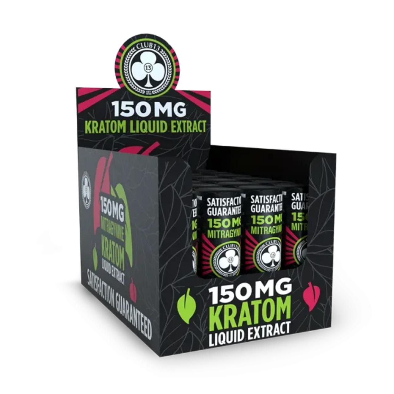 The Club13 150MIT Kratom Shot (Green Label) is a high-potency liquid extract designed for those who want a strong, balanced experience that leans toward the focused energy of a green vein strain. With 150mg of mitragynine per bottle, the "Green Label" offers a significant step up from the standard 100mg shots, providing a more robust alkaloid profile for more experienced users. This 24-count display is an essential retail asset, designed for high-visibility and high-volume sales.