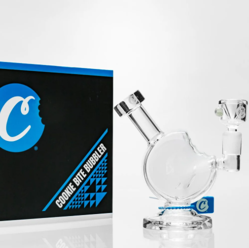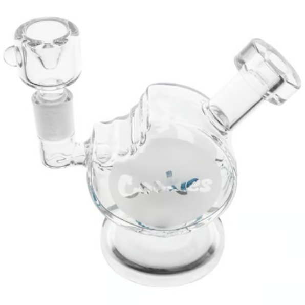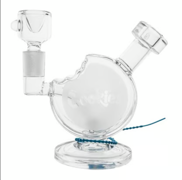 The Cookies Bite Bubbler (CKSB-001) is a unique, highly stylized piece of functional glass that takes its design cues from the iconic "Bitten Cookie" logo. It is a compact, handheld bubbler that offers the portability of a dry pipe but with the added benefit of water filtration for a smoother, cooler smoking experience.