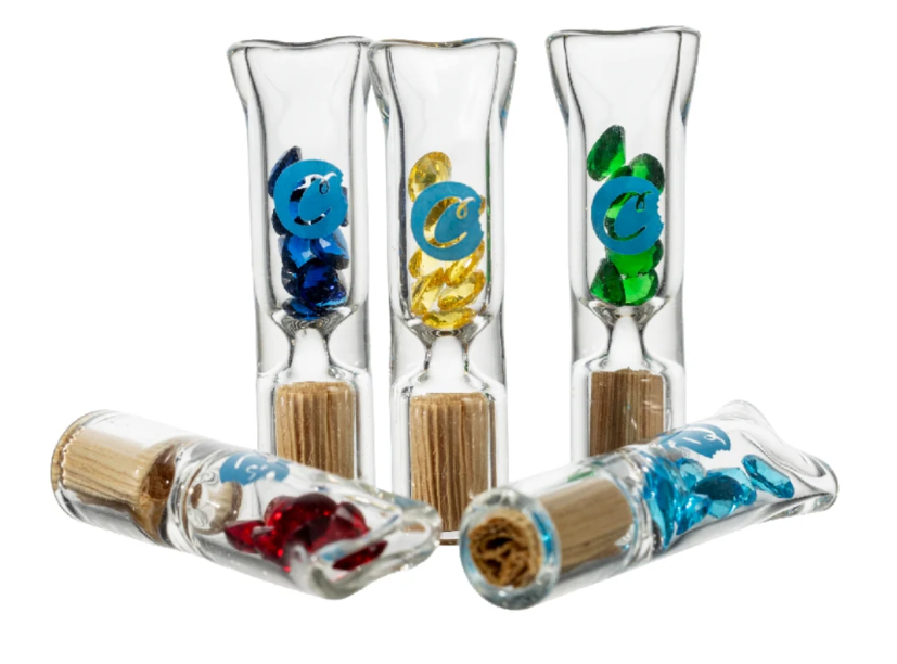 Each 5-piece pack features durable borosilicate glass tips accented with eye-catching bling detailing, giving your rolls a bold, elevated look while maintaining top-tier performance. Every tip is fitted with a natural corn husk filter, which helps cool smoke, minimize harshness, and limit moisture buildup for consistently smooth hits.