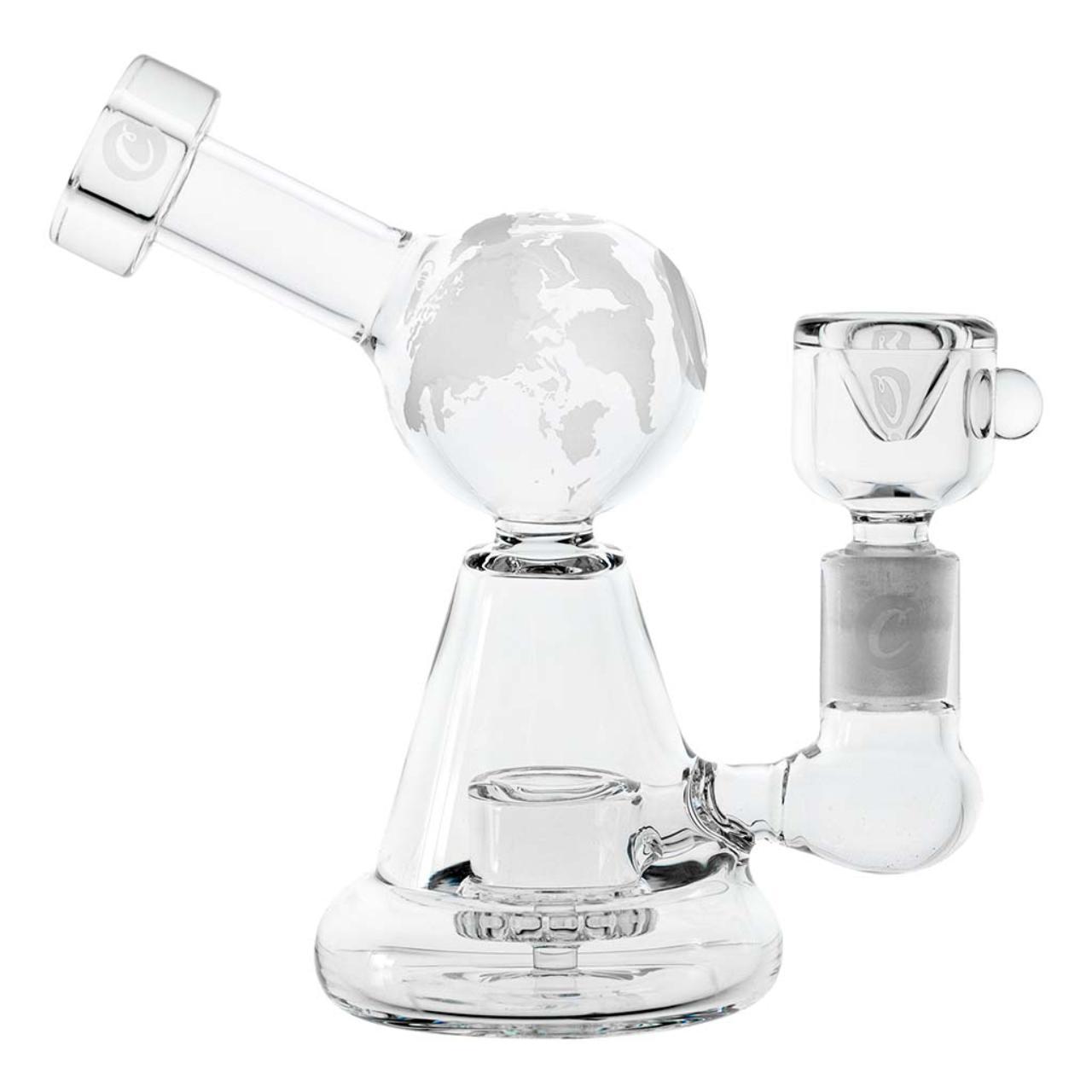 The Cookies Globe Rig captivates with its 6.5-inch-tall borosilicate glass construction featuring a distinctive globe chamber etched with world geography for visual appeal during use. The thick 5mm walls ensure durability and heat resistance, paired with a stemless 14mm joint that accommodates standard quartz bangers or nectar collectors seamlessly.