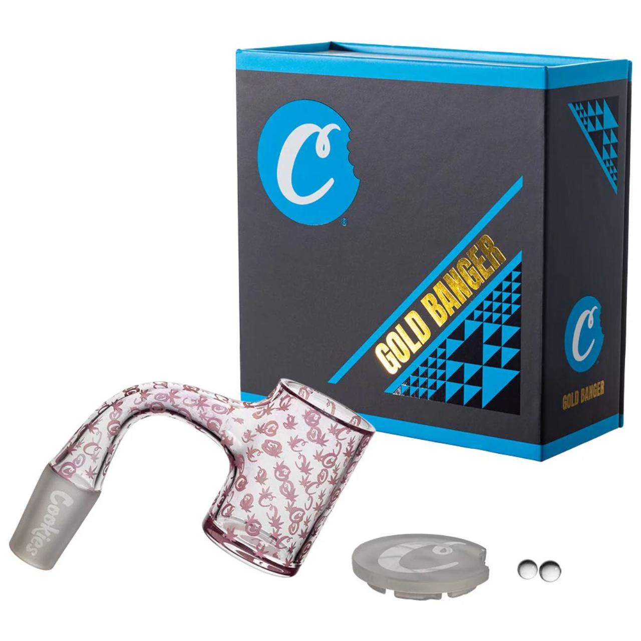 The Cookies Gold Banger is a premium quartz accessory that blends high-end performance with the brand's iconic aesthetic. Available in two bucket diameters—25mm and 30mm—this banger is crafted from high-quality gold-fumed quartz, which gives it a unique iridescent pink glow when heated.