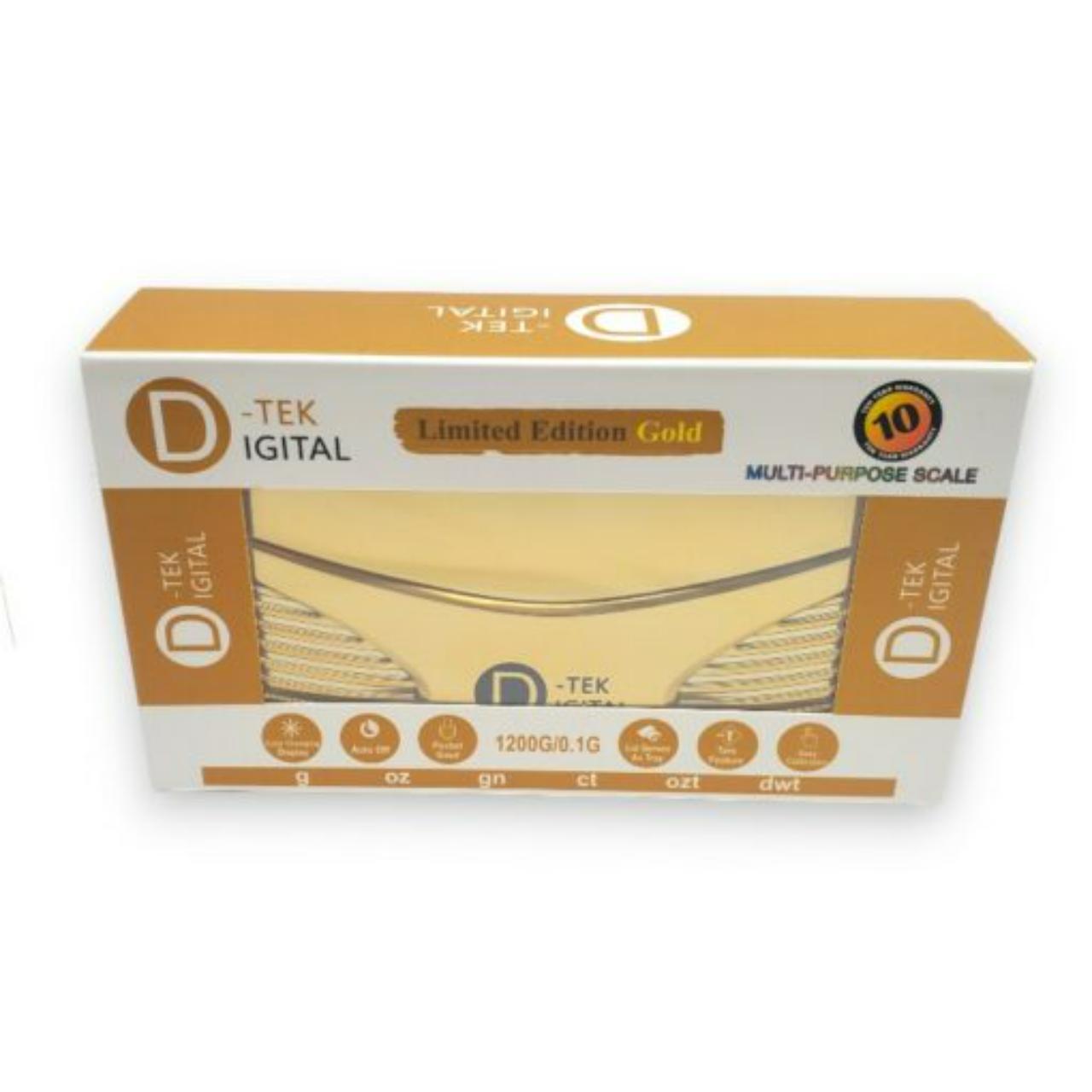 The D-TEK Digital Single Scale (DT-LE1200-GLD) is a premium, high-capacity weighing instrument that combines a bold, luxury aesthetic with professional-grade performance. Part of the Limited Edition (LE) series, this scale features a striking Gold finish and offers a robust 1200g capacity with 0.1g accuracy. It is the ideal choice for users who want a statement piece that doesn't compromise on precision for weighing botanicals, jewelry, or precious metals.