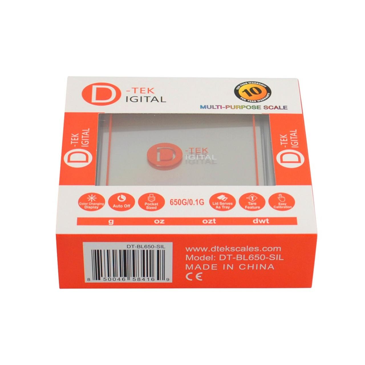 The D-TEK Digital Single Scale (DT-BL650-SIL) is a high-performance pocket scale that combines a sleek, metallic aesthetic with everyday durability. With a 650g capacity and 0.1g readability, this model offers slightly more weighing range than the standard 600g variants, making it a versatile choice for weighing botanicals, supplements, jewelry, or small postal items.