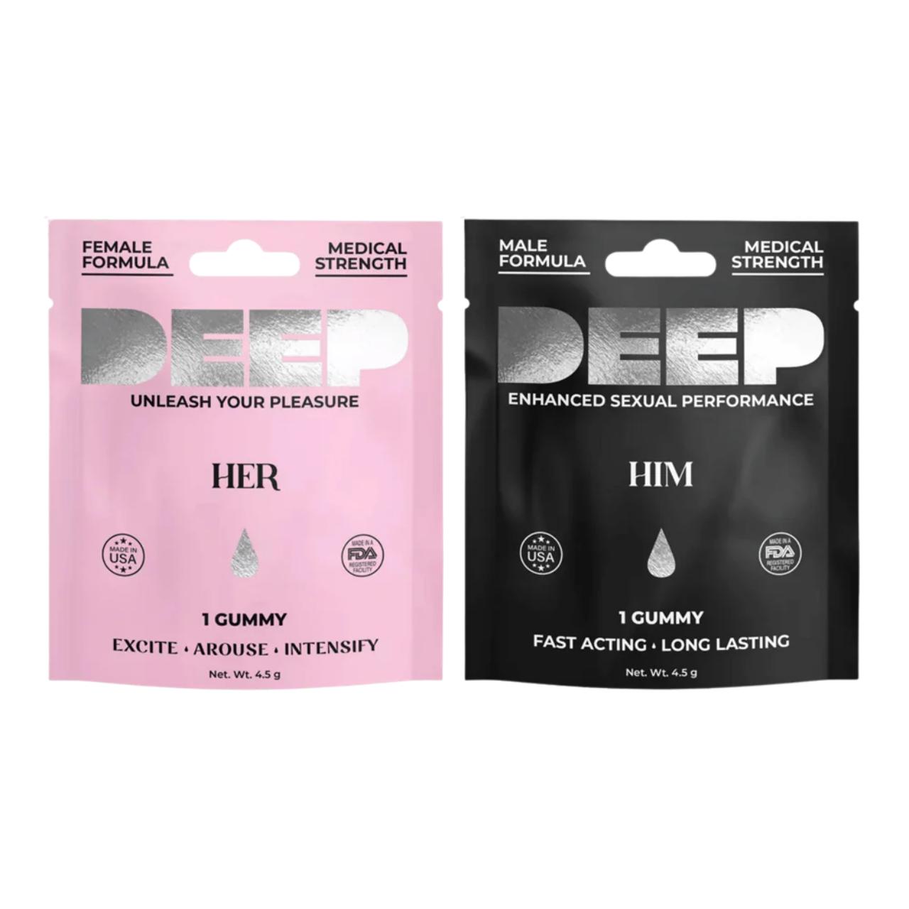 The Deep Gummy 12ct Display features high-potency performance gummies tailored specifically for Male and Female needs. These gummies offer a discreet, flavorful, and fast-acting alternative to pills, utilizing a specialized blend of natural extracts and performance boosters.
