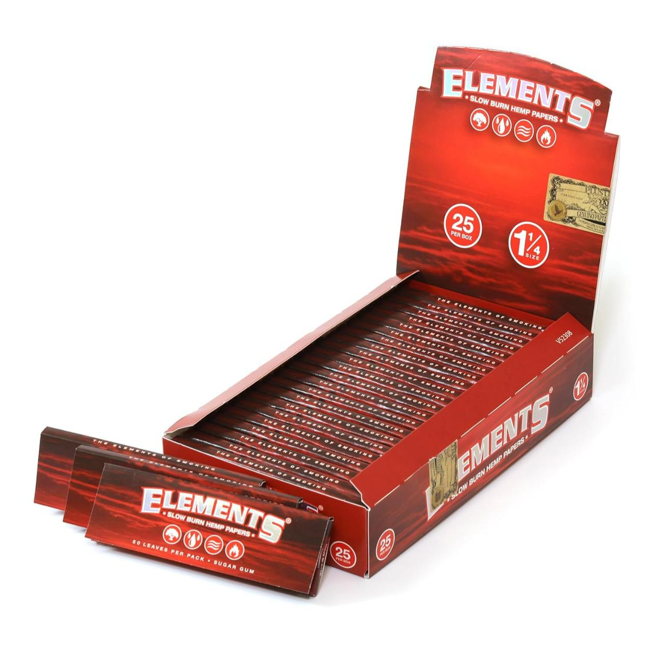 Elements - Slow Burn Hemp 1-1/4 (25 Booklets Per Box / 50 Leaves Per Booklet) is the "Earth" element in the brand's lineup. While the classic blue Elements are made of rice, the Elements Red series is crafted from unbleached hemp, specifically designed for a much slower, more traditional burn.