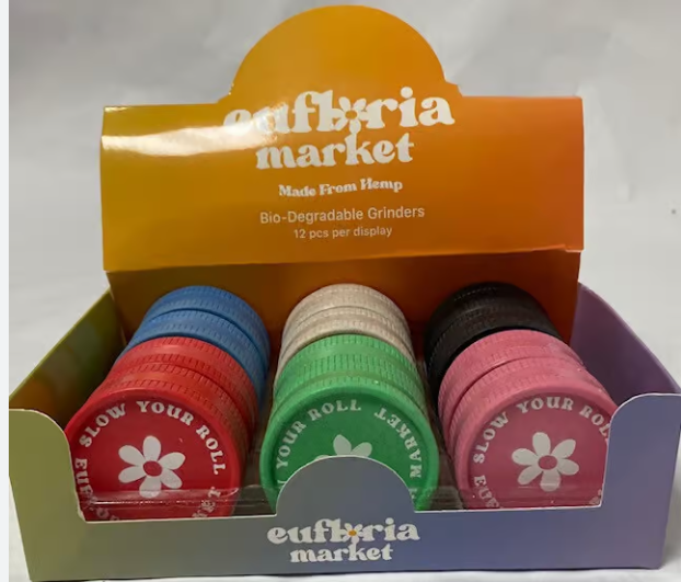 The Eufloria Biodegradable Grinder (12ct Display) is an eco-conscious wholesale solution for retailers looking to offer sustainable alternatives to traditional plastic or metal grinders. These grinders are part of the growing "green" movement in smoking accessories, utilizing natural plant fibers that break down over time.