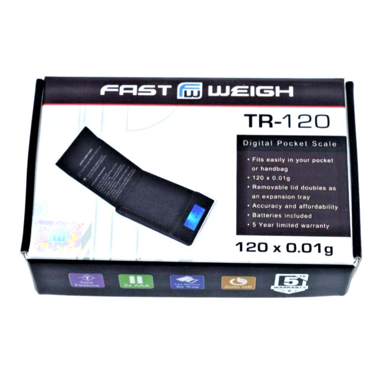 The Fast Weigh TR-120 (Black) is a uniquely designed, ultra-compact digital scale shaped like a small triangle (hence the "TR" series designation). This model is highly prized for its "stealth" portability and its specific focus on accuracy for smaller loads, offering a 120g capacity with a 0.1g readability.