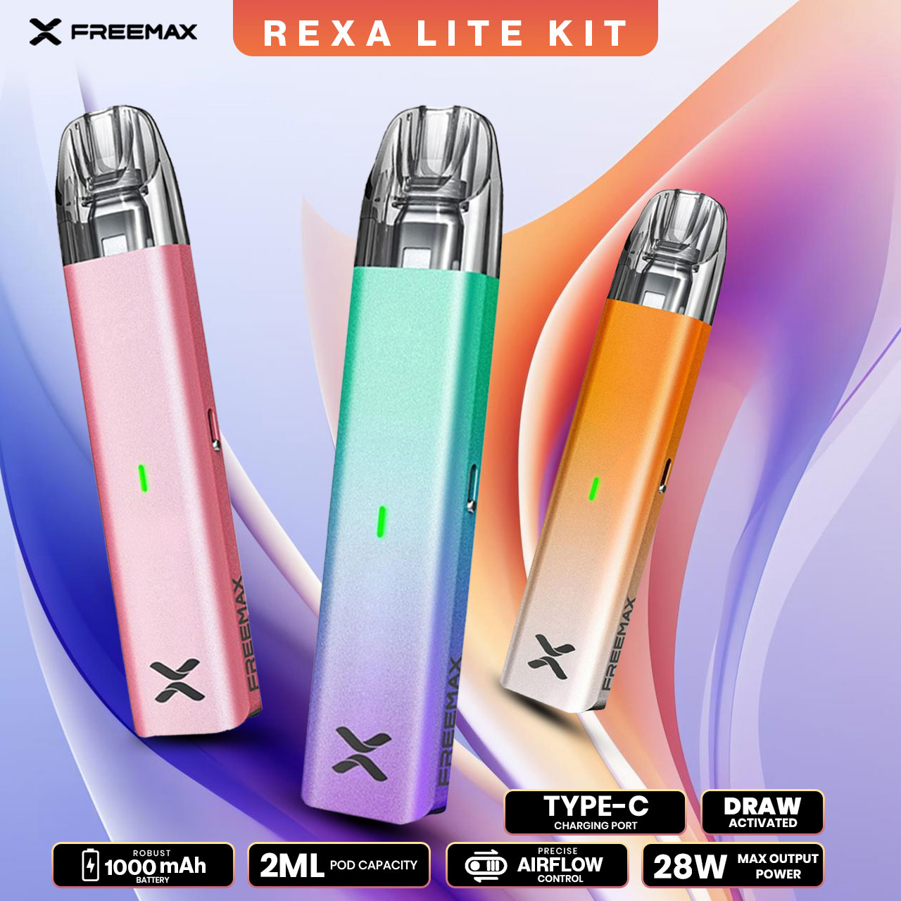 The FreeMax Rexa Lite is a streamlined, user-friendly pod system designed for portability and flavor. Part of the innovative Rexa series, it features an integrated 1000mAh battery and utilizes adaptive wattage (up to 28W) that automatically adjusts based on the pod used. With its draw-activated firing and slim profile, it is an ideal choice for beginners or vapers looking for a sleek, "pen-style" daily device.