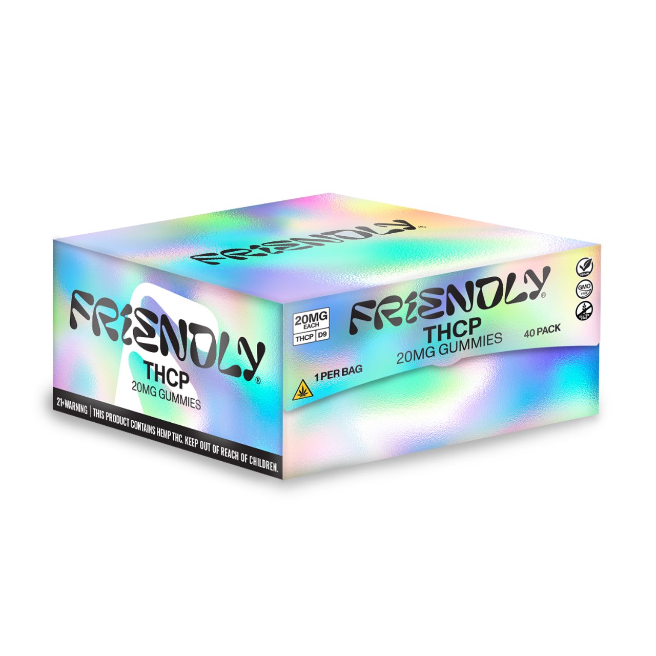 The Friendly THCP/Delta 9 20mg Gummies 40-Count Display is a high-volume retail solution featuring an assortment of Friendly’s "mini but mighty" gummies. This master display is designed for smoke shops and dispensaries, providing 40 individual servings (often packaged as single-unit or 2-unit grab-and-go packs) or a large bulk jar for individual sale.