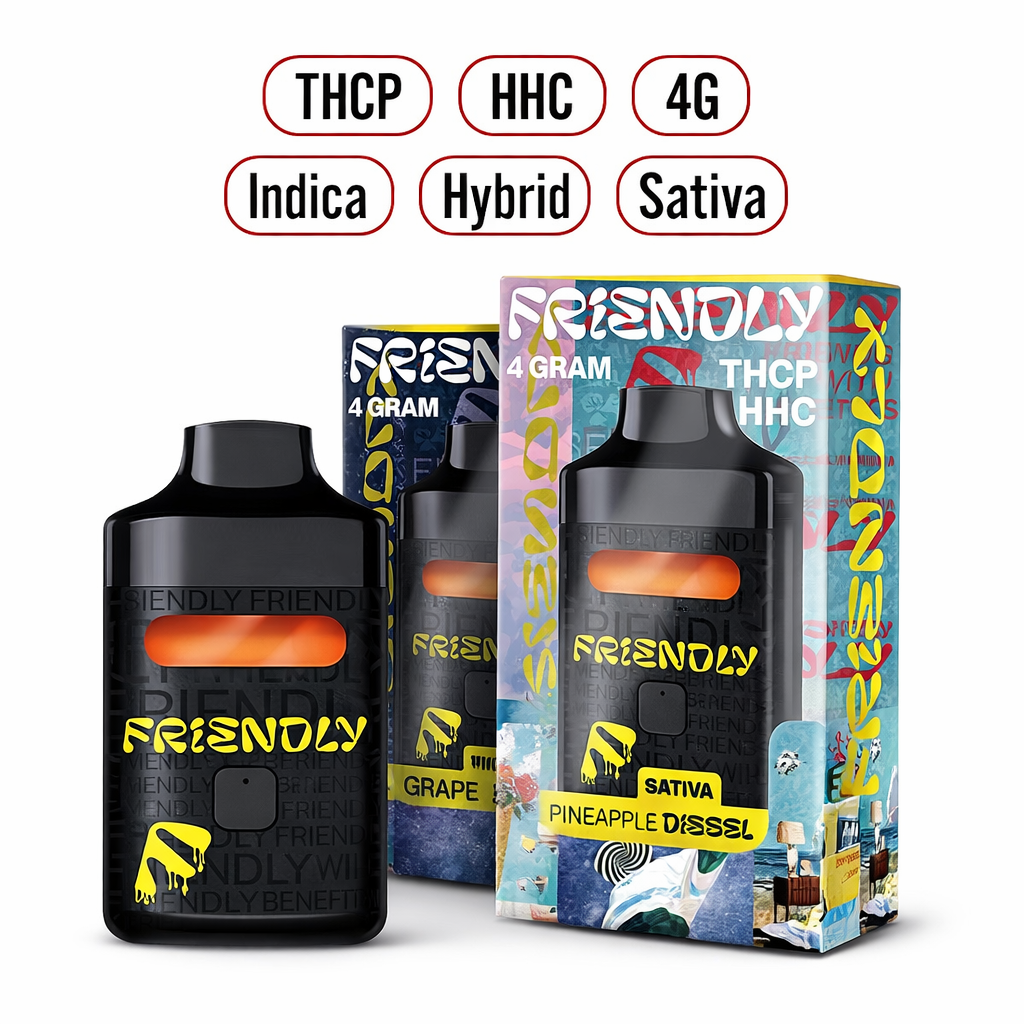 The Friendly THCP / HHC 4G Disposables are high-capacity, heavy-hitting devices designed for maximum longevity and intense effects. This 5-count display features 4-gram (4000mg) units, utilizing a potent dual-cannabinoid blend of THCP and HHC to provide a "marathon" high that combines deep physical relaxation with clear-headed euphoria.