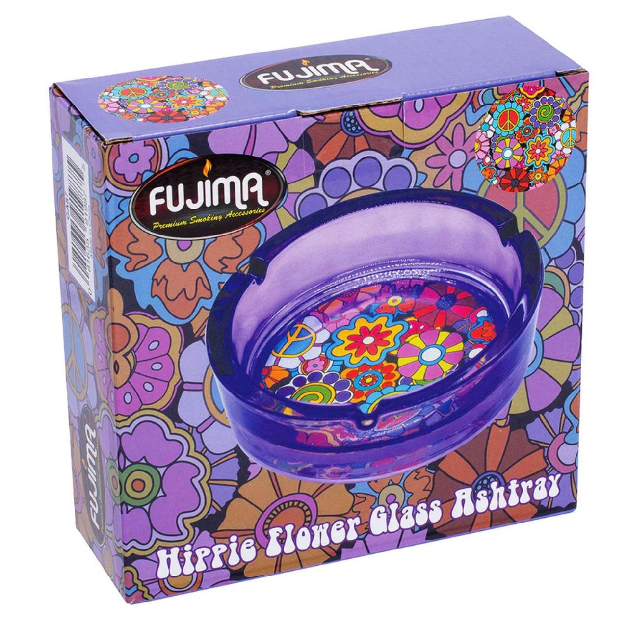 The Fujima "Hippie Flower" Glass Ashtray (Item #GA87) is a vibrant, retro-inspired accessory that brings a psychedelic 1960s aesthetic to your smoking space. Part of Fujima's premium graphic glass collection, this 1-pack item combines heavy-duty durability with high-definition "trippy" artwork.