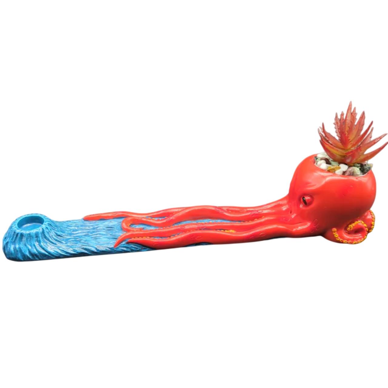 The Fujima Octopus Incense & Cone Burner (Item #IBP12) is a highly detailed, multi-functional piece of decor designed for fans of aquatic and gothic aesthetics. Unlike standard burners, this model is specifically engineered to handle both incense sticks and backflow/standard cones, while featuring a decorative artificial plant element.
