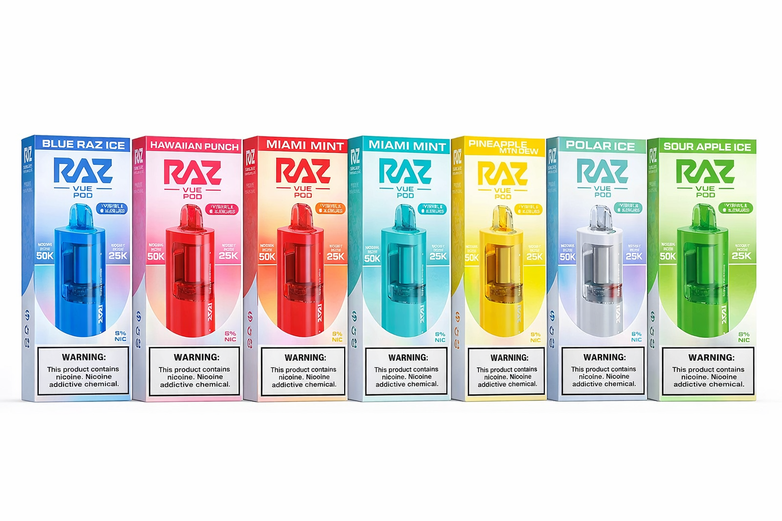 The best vape replacement pods are equipped with a 5% (50mg) nicotine level and an airflow system that can be adjusted, hence the user has the option of a very restrictive draw or a more open, airy one. The side-mounted digital display is an excellent feature that keeps you fully informed about the status of your device. Buy the Geek Vape Raz VUE 50K Replacement Pod Cartridge in bulk now from SpeedyDistribution, the No. 1 vape wholesaler of high-quality vape accessories. Order now!