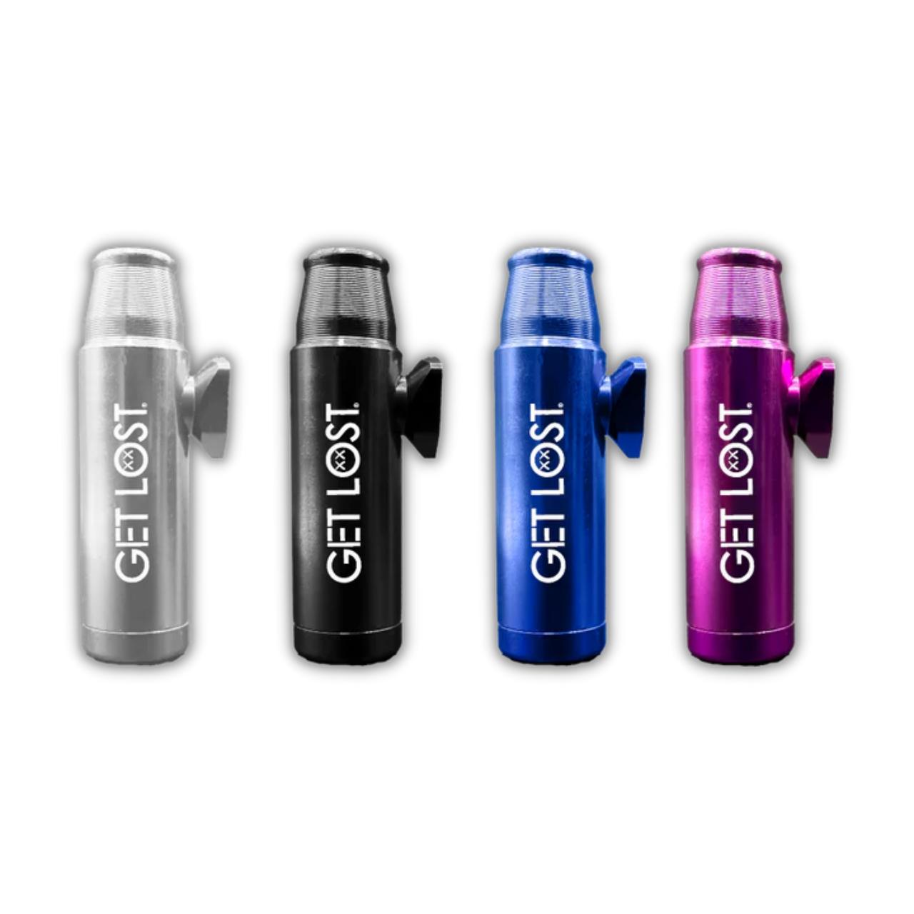 The Get Lost Snuff Bullet in the 30ct Display is a retail-ready bulk set of individual dispensers designed for the storage and measured dosing of fine powders. These "bullets" are a staple accessory for those who require a portable, discreet, and spill-proof container.