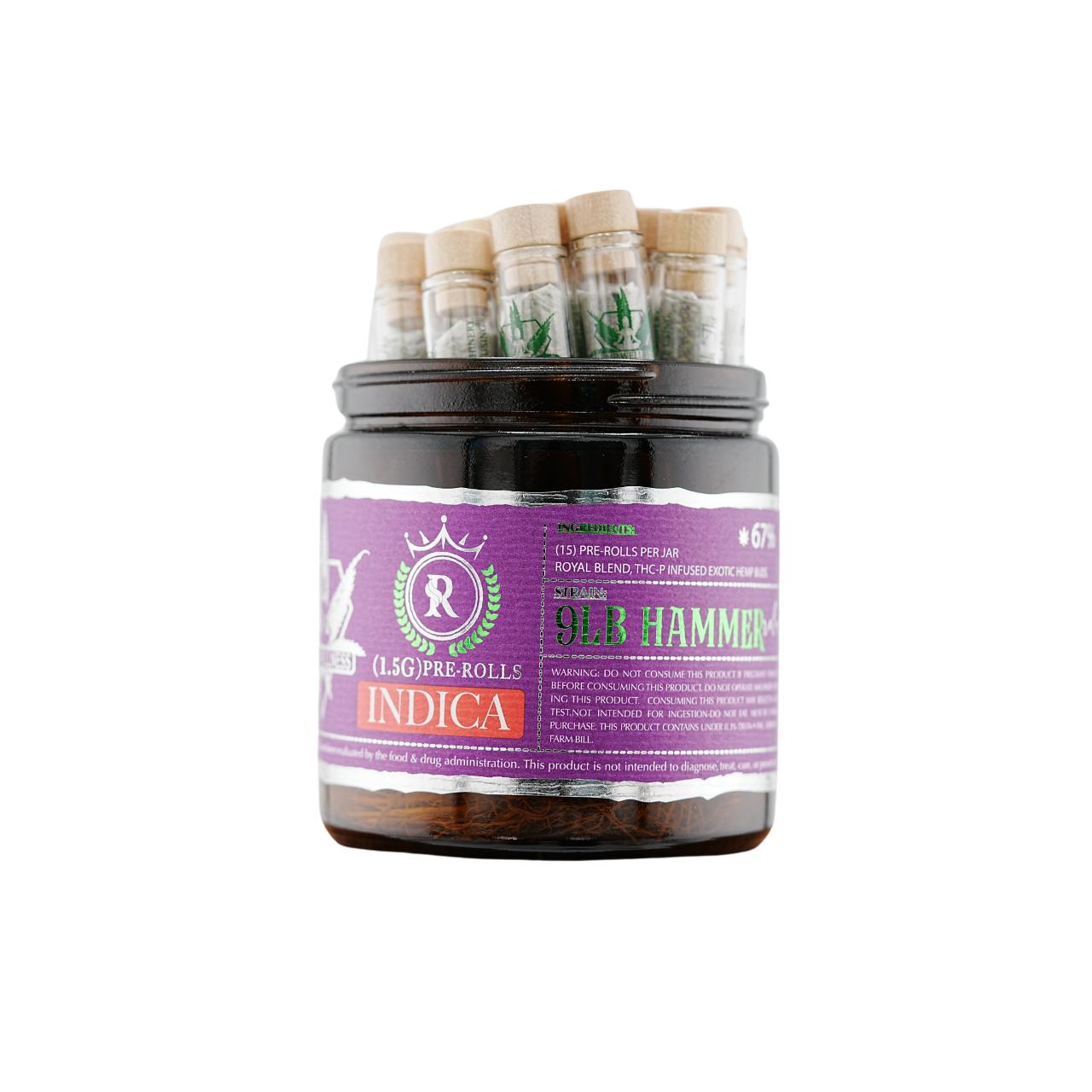 The Hemp Wellness Royal Blend THC-P 1.5G Pre-Rolls in the glass jar format represent a premium boutique offering. Unlike bulk packs, these are individually housed in airtight glass jars to maintain the terpene integrity and moisture level of the THCP-infused flower.
