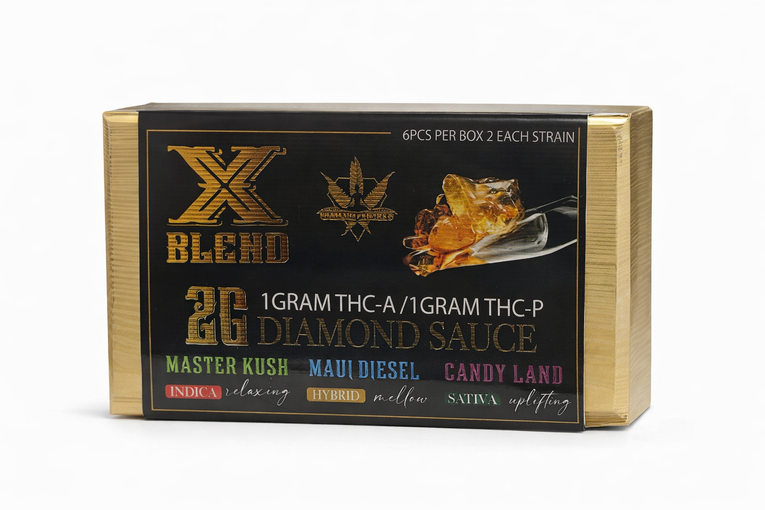 The Hemp Wellness X-Blend Diamond Sauce 2G is a high-potency dab wax concentrate engineered for enthusiasts who demand a sophisticated dabbing experience. This premium diamond sauce features a precision-crafted "X-Blend," which integrates high-purity THCA crystalline structures with a rich-terpene-rich layer. The 2-gram jar provides a significant volume of concentrate, characterized by its shimmering, gem-like appearance and semi-translucent golden hue.