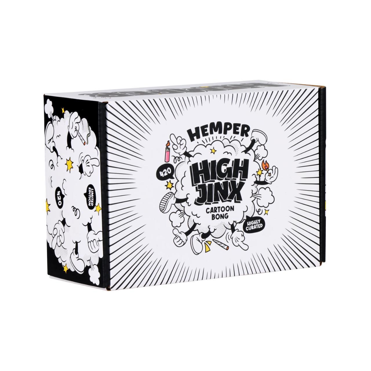 The HEMPER High Jinx Cartoon Water Pipe is a playful, high-performance piece from "The High Jinx Family." Designed with a retro, "Steamboat Willie" animation style, this novelty bong is shaped like a classic cartoon gloved hand.