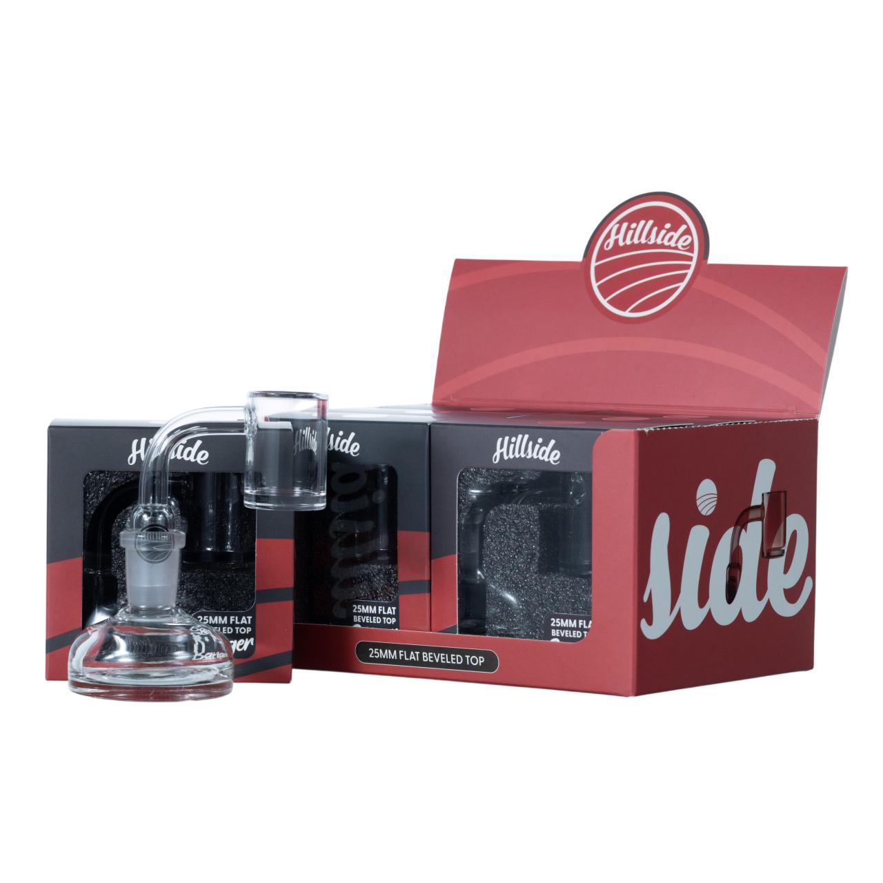 The Hillside Glass House 22mm Flattop Banger series consists of high-quality quartz buckets designed for efficient heat retention and even vaporization. These are typically sold in 6-pack display boxes (POP displays), making them ideal for retail or for heavy users who prefer having fresh replacements on hand.