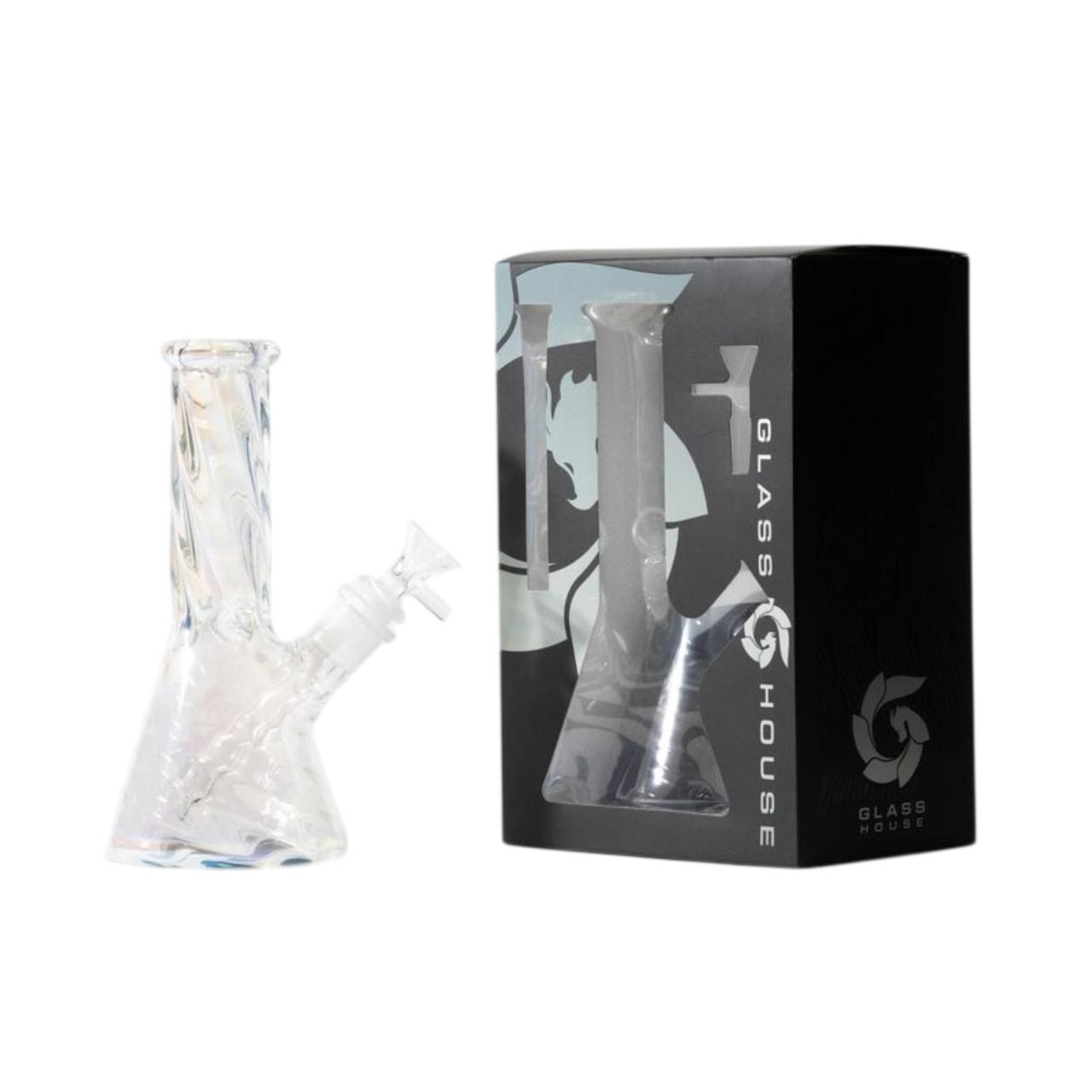 The Hillside Iridescent Mini Beaker is a stunning addition to the Cookies glass family, known for its eye-catching shimmering finish and compact, functional design. These mini beakers are perfect for those who want a portable water pipe that doesn't sacrifice filtration or style.