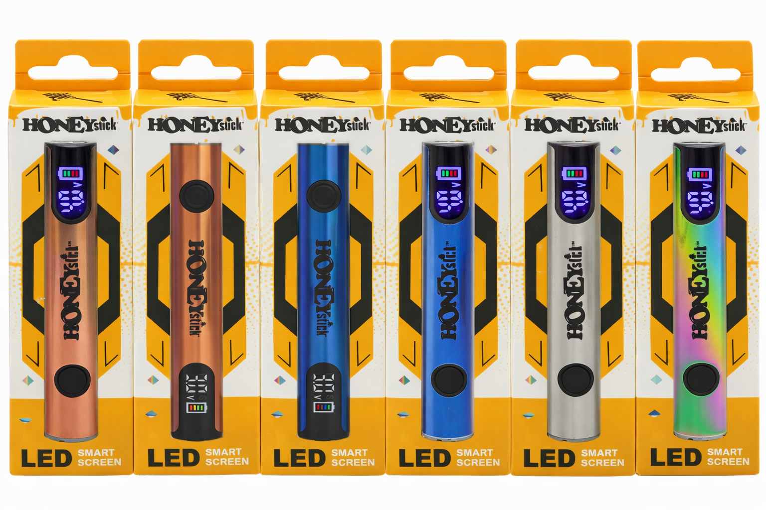 The HoneyStick Digi Stick (10ct Display) is one of the most advanced "stick-style" batteries in the HoneyStick lineup. It earns its "Digi" name by being one of the few slim pen-style batteries to feature a digital screen, moving the 510-battery market into a more data-driven, high-tech space.