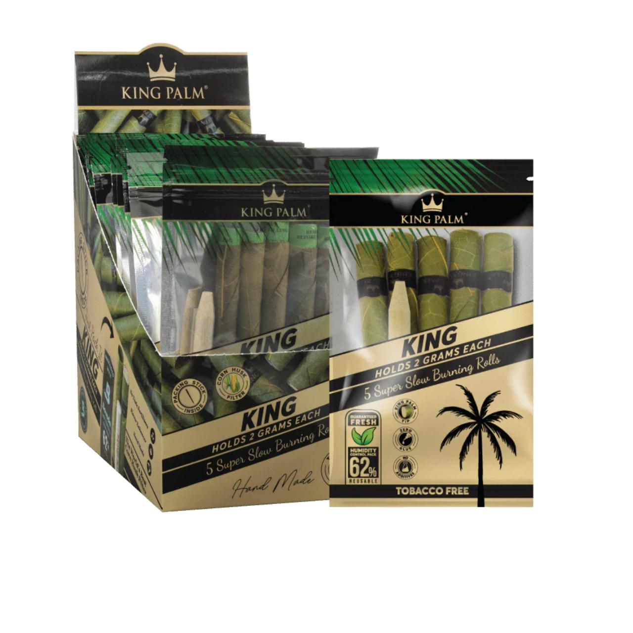 The King Palm - 5 Kings (15ct Display / 5 Cones Per Pack) is the ultimate bulk "Value Pack" for serious smokers. While the standard 2-pack is popular for a quick grab, the 5-pack is the preferred choice for those who want a better price-per-cone and the assurance of a Boveda humidity pack to keep the leaves fresh.