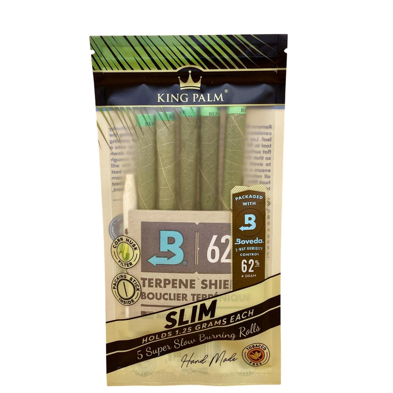 The King Palm - 5 Slims (15ct Display / 5 Cones Per Pack) is the high-capacity "Value Pack" for the Slim size. Each Slim is designed to hold 1.25 grams of material, making it slightly larger than the 1g Mini but more manageable than the 2g King.