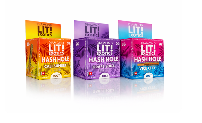 Introducing the LIT Hash Hole MoonRock Exotic Prerolls 2G - 20CT Display, which offers premium convenience with twenty individually wrapped 2-gram pre-rolls, each featuring high-potency flower cores hand-dipped in solventless hash and fully coated in premium kief for maximum cannabinoid density. These top-quality MoonRock Exotic Prerolls are available in Cali Sunset, Grape Soda, and Vice City flavors.