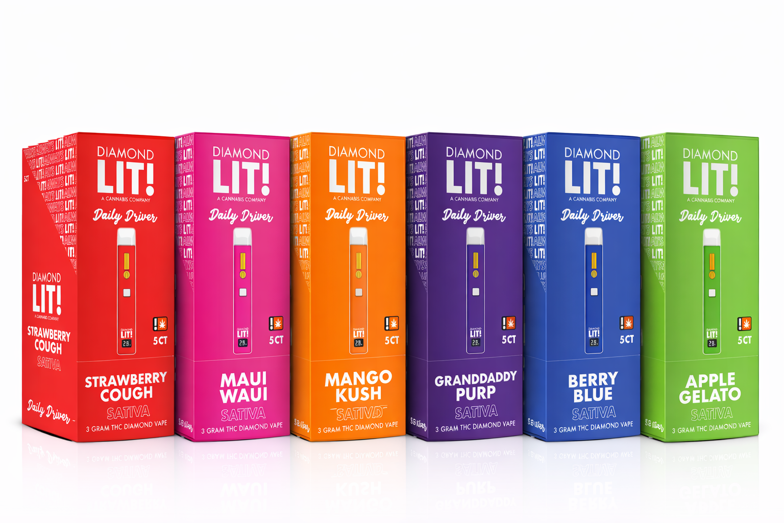 LIT THC Diamond Disposable 3G – 5CT offers a premium lineup of high-quality disposable vaporizers designed for convenience, reliability, and bold flavor. Each display includes five 3-gram diamond-style disposables — perfect for sharing, sampling, or stocking shelves with popular strain options. Crafted for smooth draws and consistent performance, these disposables combine potent THC distillate with flavorful strain profiles wrapped in sleek, easy-to-use hardware.