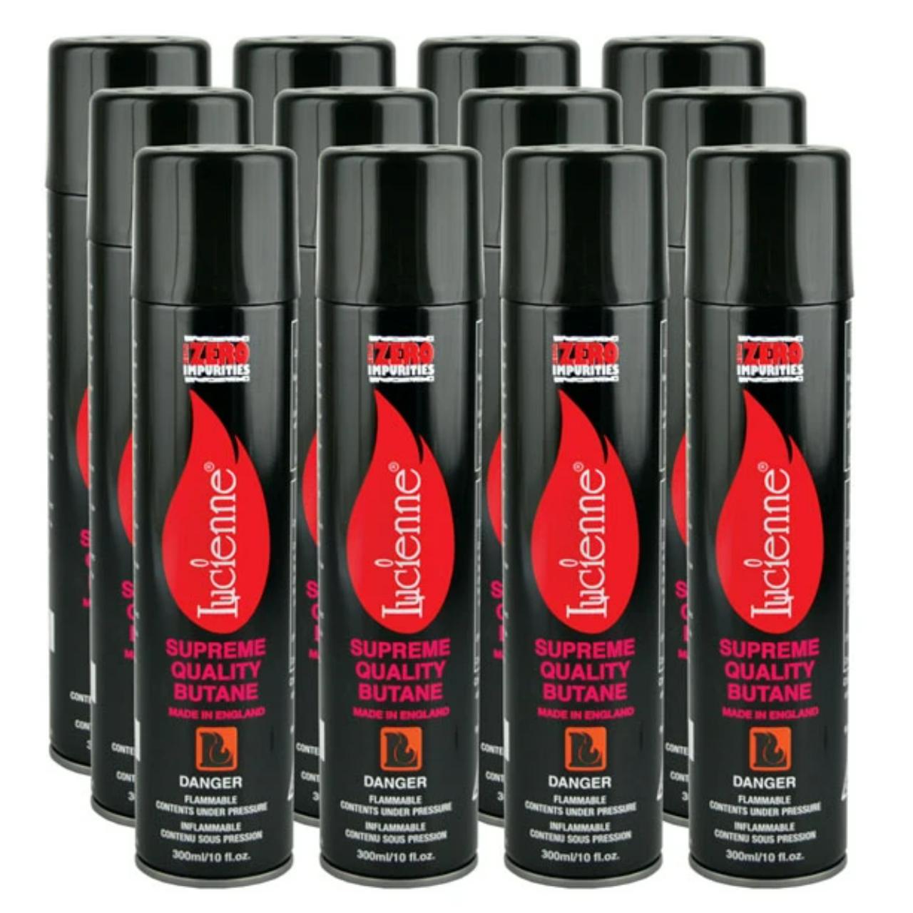 Lucienne Butane (300ml 12ct Display) is a premium-grade, highly refined butane gas widely regarded as one of the cleanest fuels on the market. This 12-count retail display is a staple for cigar lounges, smoke shops, and kitchens, offering high-quality fuel for butane lighters, culinary torches, and vaporizers.