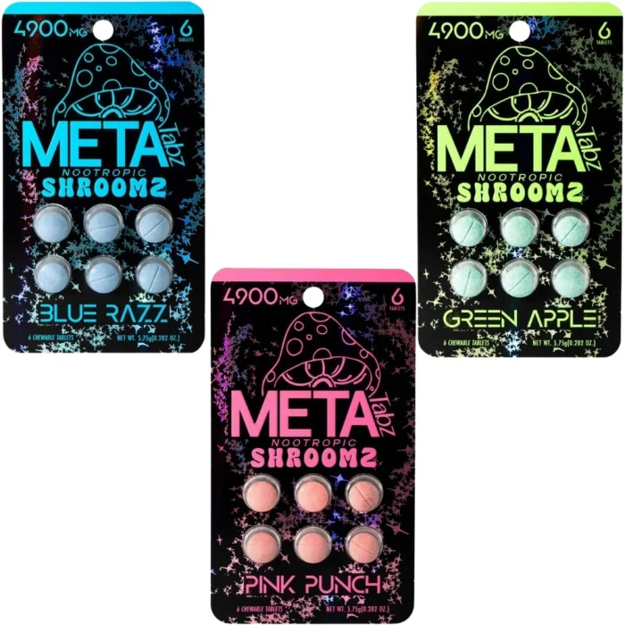 The Meta Tabz Shroomz tablets come in an assortment of exciting flavors like Blue Razz, Green Apple, Pink Punch, among others. Therefore, they ensure that the user has an amazing experience from the first touch to the last. These high-strength mushroom tablets come in a compact display that is easy to carry.