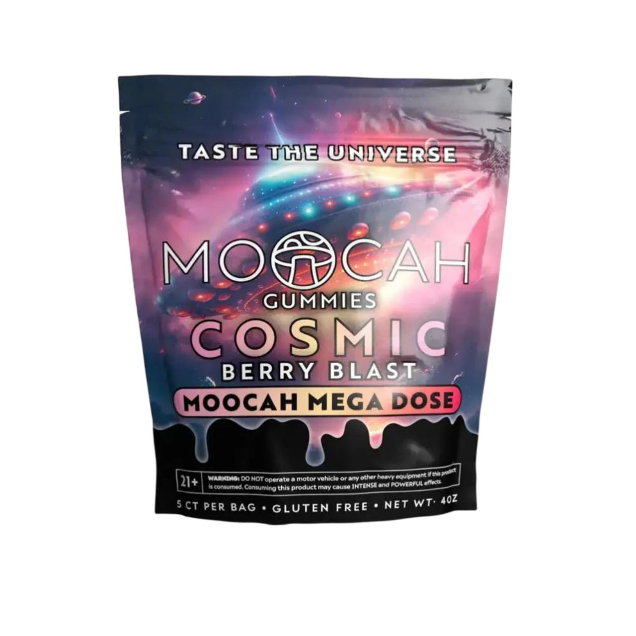 The Moocah Mega Dose Mushroom Gummies are a high-potency "magic" mushroom alternative designed for those seeking a deep psychedelic experience without psilocybin. This 12-count display contains 12 individual pouches, each typically holding 5 mega-dose gummies.