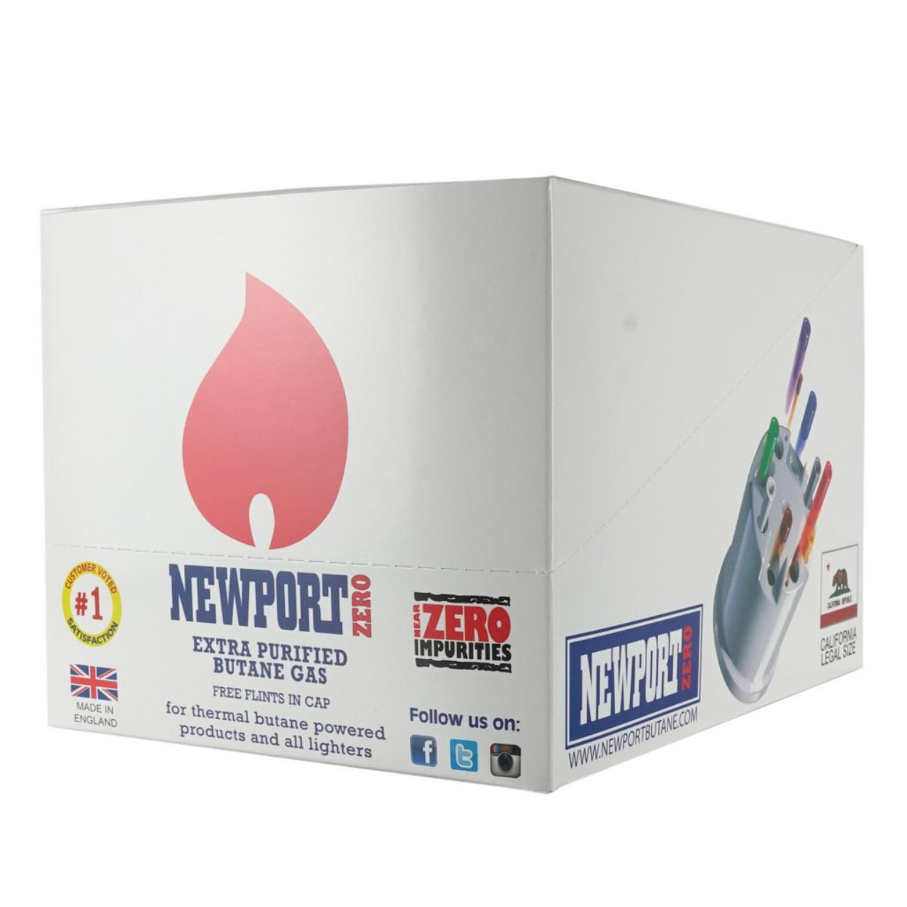 Newport Butane (145ml 12ct Display) is widely considered one of the gold standards in the butane industry. Known for its "Zero Impurities" logo, Newport is the preferred choice for enthusiasts who own high-end lighters or require extremely clean fuel for extraction and culinary purposes.