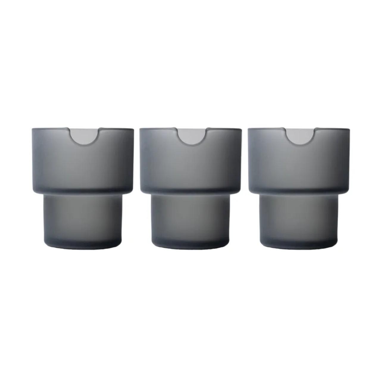 The NWTN Flower Pots Ashtray Set in Honeycomb is a collection of three stackable glass ashtrays designed to look like minimalist terracotta pots. The "Honeycomb" colorway is a warm, golden-amber hue with a matte, sandblasted finish.