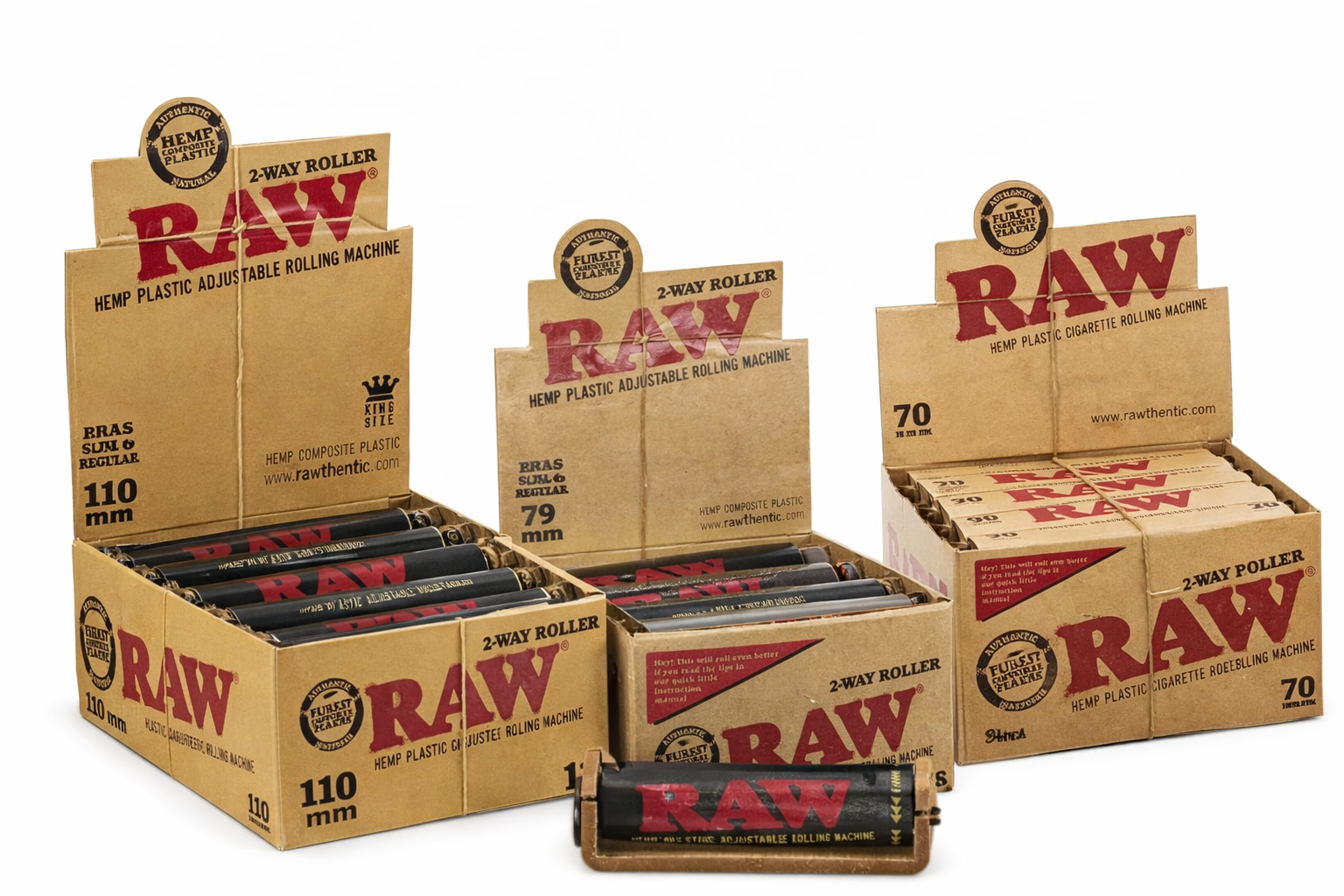 Enhance your rolling setup with the RAW - ROLLER - 12CT, an essential accessory for any DIY rolling collection. This pack includes 12 high-quality rolling machines, each crafted from durable, eco-friendly hemp composite plastic that’s built to last and engineered for smooth, consistent operation. Designed to handle standard 110 mm (king size) papers and tips, each of the best rollers helps streamline the rolling process — giving you uniform and dependable results with minimal effort.