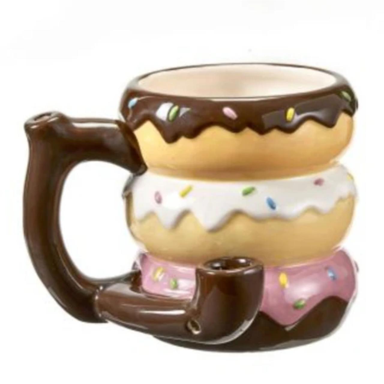 The Roast & Toast Donut Mug (Product Code: 82432) is a fun, highly detailed novelty piece designed to look like a stack of three delicious, sprinkled donuts. It serves as both a high-capacity coffee mug and a functional dry herb pipe.