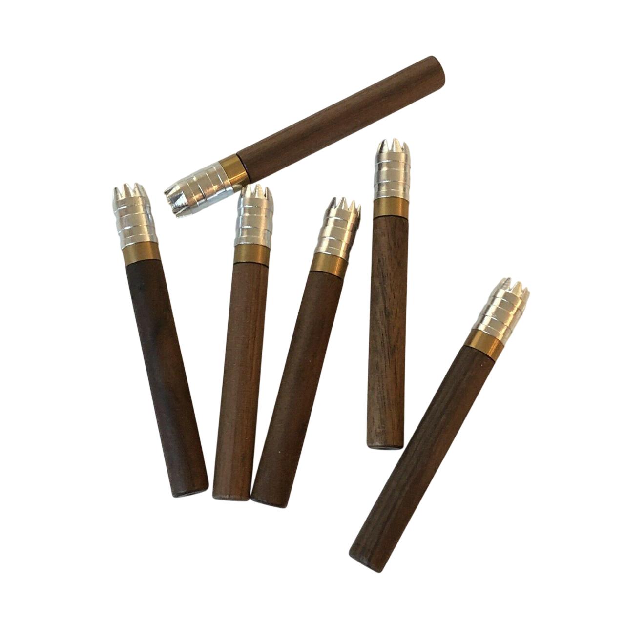 These high-quality one-hitters in this show have a unique shark teeth design tip, which not only provides a visual appeal but also assists in setting and keeping material in place when using, thus, loading is easy and more reliable. These are premium wooden one-hitters that are light but strong, and have a traditional style which match with numerous dugouts and storage tins.