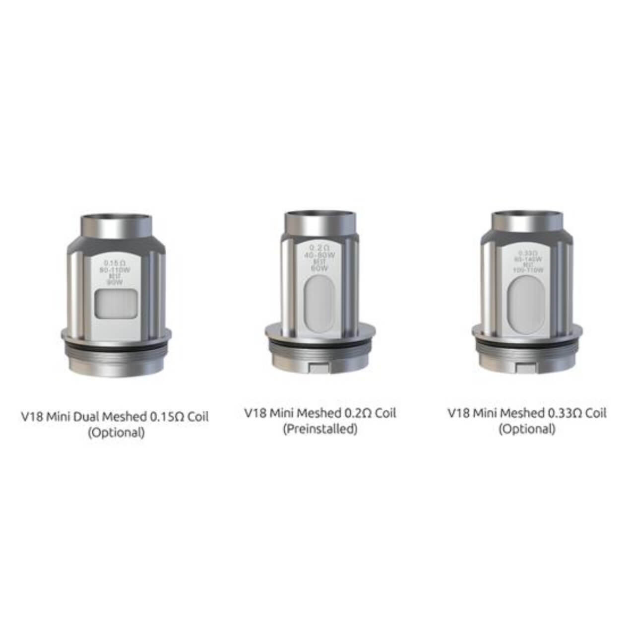 The SMOK V18 Mini Replacement Coils are high-performance mesh coils specifically designed for the SMOK TFV18 Mini Tank. Sold in a 3-pack, these coils utilize FeCrAl (Kanthal) mesh material and organic cotton to deliver rapid heating and massive vapor production.