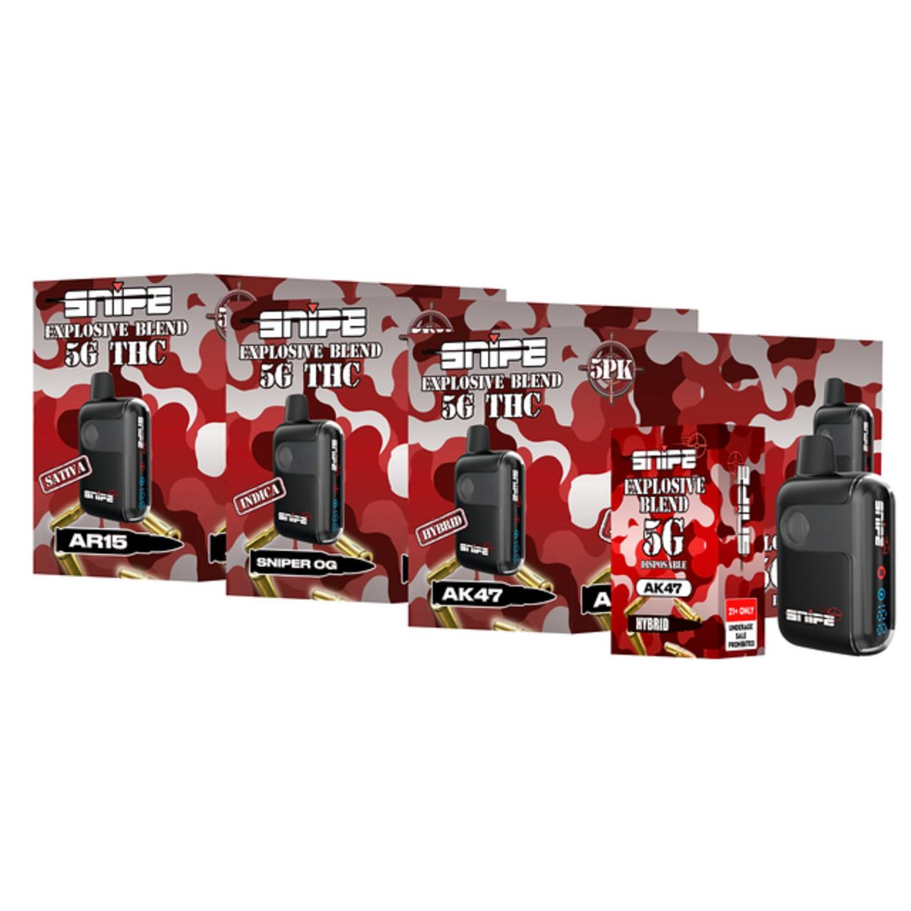 Designed for high-tolerance users and heavy hitters, each disposable features SNIPE’s Explosive Blend, engineered for strong vapor production, smooth airflow, and consistent potency. The 5-count display is ideal for smoke shops and dispensaries looking to move premium high-gram disposables with strong margins and minimal shelf space.