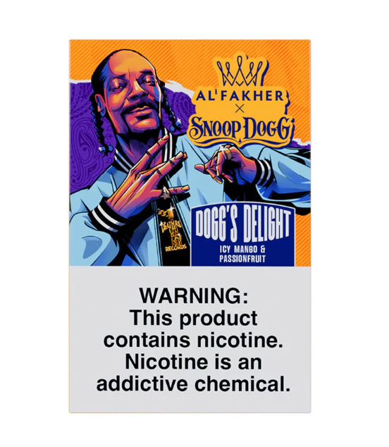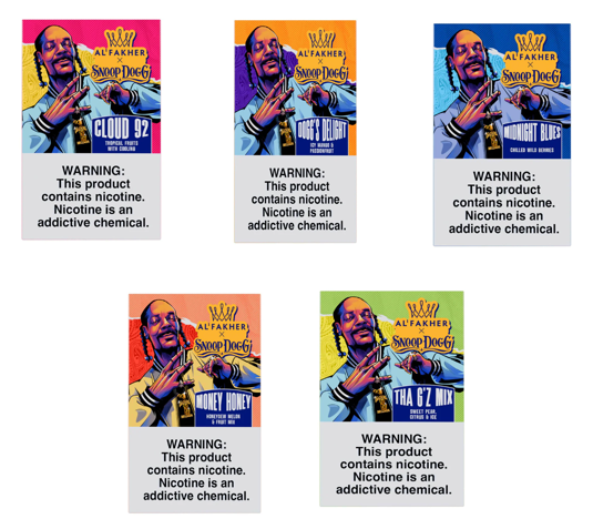 The limited line combines Al Fakher's excellence with Snoop Dogg’s classic West Coast vibe and features a set of very distinct and strong flavors that surely will amaze any hookah enthusiast. Among them are Cloud 92, a tropical fruit with a Cooling Finish; Dogg’s Delight, a combination of Mango and Passionfruit with an ice blend; Midnight Blues, a complex Wild Berry blend; Money Honey, a sweet Honeydew and fruit selection; and Tha G’z Mix, a blend of pear, citrus, and ice.