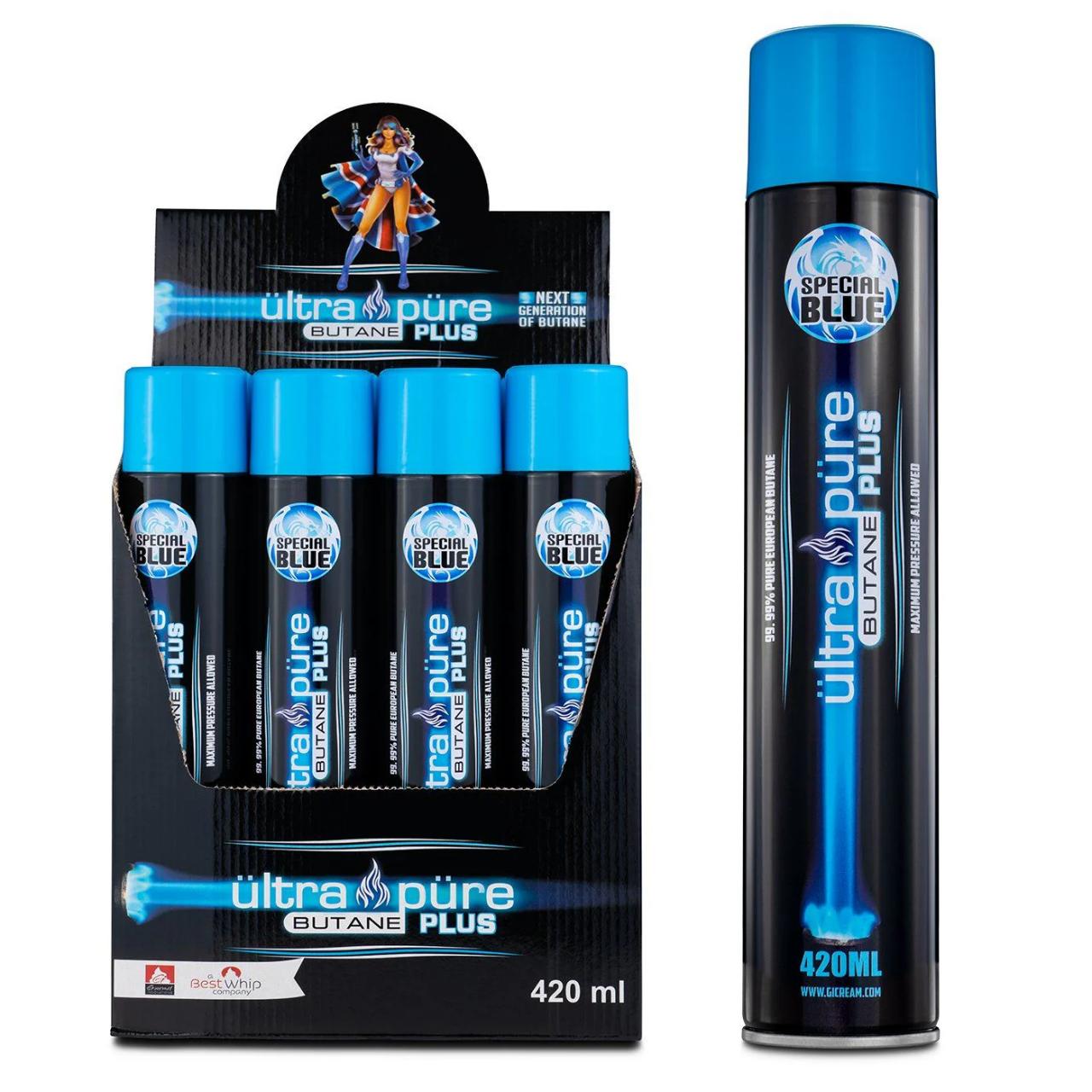 Special Blue Ultra Pure Plus Butane (420ml 12ct Display) is a high-performance, professional-grade fuel designed for those who require the highest level of purity.Labeled as "Ultra Pure Plus," this butane undergoes an extensive refining process to achieve near-zero impurities, making it one of the cleanest burning fuels available on the market.