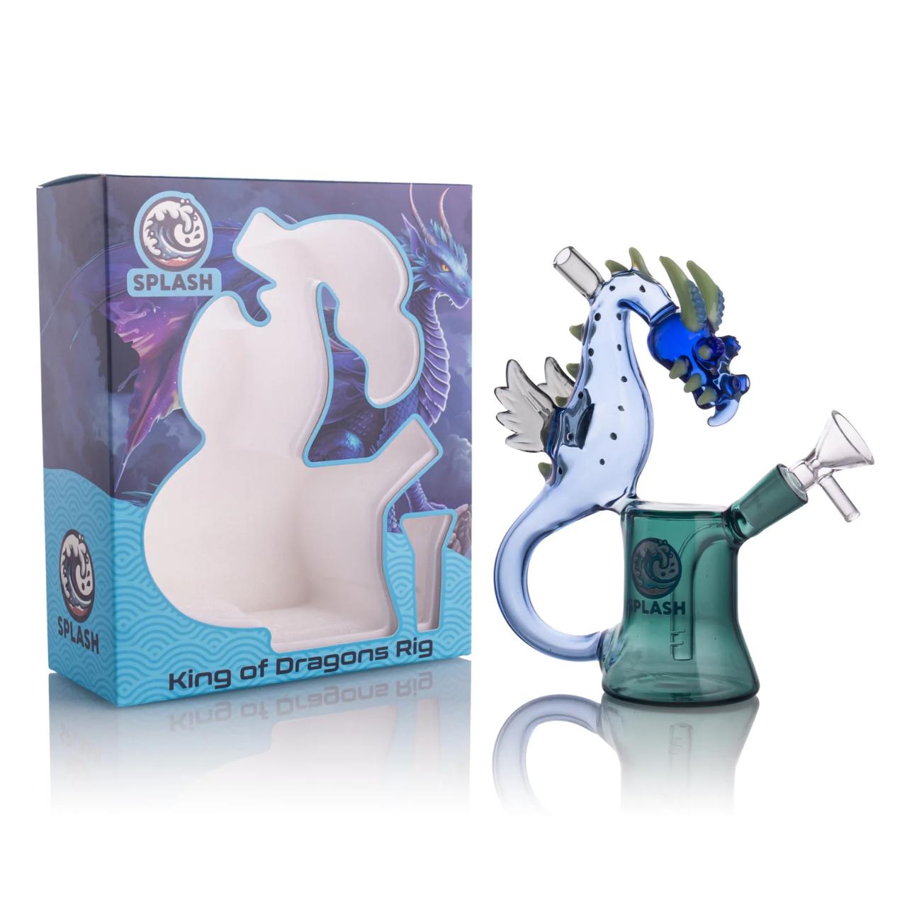 The Splash King of Dragons Rig Kit (Product Code: A0680) is a standout piece in the Splash glass collection, featuring a more intricate and artistic design compared to their standard geometric rigs. It is designed as a "Dab Out" (Dout) kit, providing a themed, high-performance experience in a compact form.