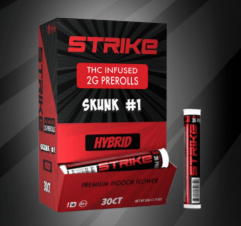 Deliver a powerful, terpene-rich smoking experience with the STRIKE THC Infused 2G Pre-Rolls. Crafted for consumers who want maximum potency, bold flavor, and consistency, each pre-roll is infused to elevate the effects beyond standard flower. This assortment offers a balanced lineup of Indica, Sativa, and Hybrid strains, making it ideal for retailers seeking a high-demand, premium infused pre-roll option.